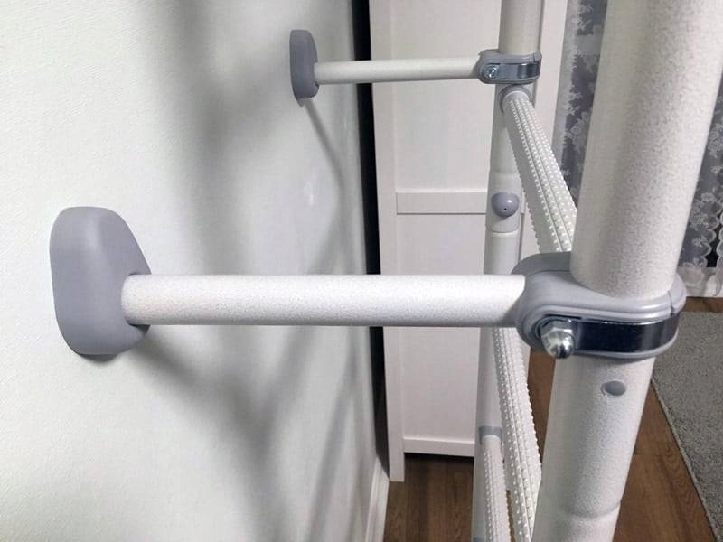 Установка расширяющейся лестницы на гипсокартонные потолки возможна, если использовать монтажные втулки к боковой стене. Тогда у нас в одном гимнастическом наборе будет одновременно два варианта установки, а наша раскладная лестница будет раскинута между потолком и полом, а также дополнительно прикреплена к боковой стенке в двух, четырех или шести местах. Дополнительная пара втулок для крепления к боковой стене также рекомендуется при удлинении нашей настенной лестницы с помощью удлинителя, удлиняющего ее на 1 или 2 ступеньки.