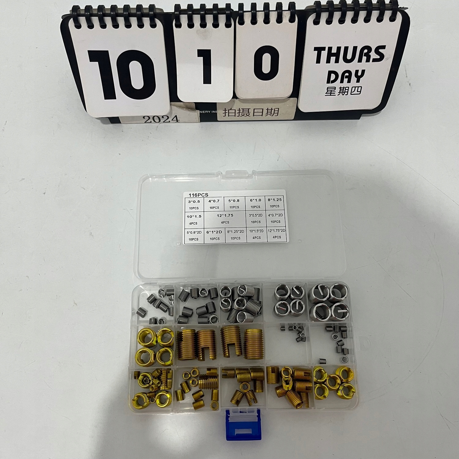 НАБОР ДЛЯ РЕМОНТА РЕЗЬБЫ ВСТАВКА ДЛЯ РЕМОНТА РЕЗЬБЫ M3/M4/M5/M6/M8/M10/M12 116 ВТУЛКА САМОРЕЗНАЯ ВСТАВКА 116 ШТ. (ЛАТУНЬ)