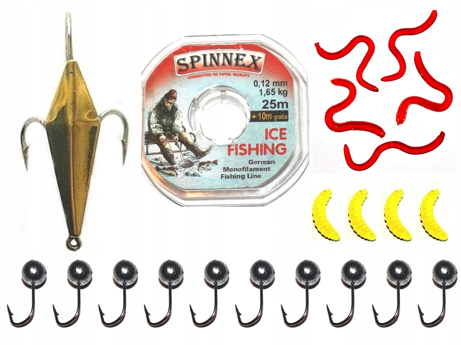 ЗОЛОТОЙ МОРМЫСКИЙ + СЕРЕБРЯНЫЙ ШАР - 10 ШТУК + ЖЕЛТАЯ ЛИЧИНКА 2см. - 4 ШТ. + КРАСНЫЕ ЧЕРВЯКИ 8см. - 5 шт.