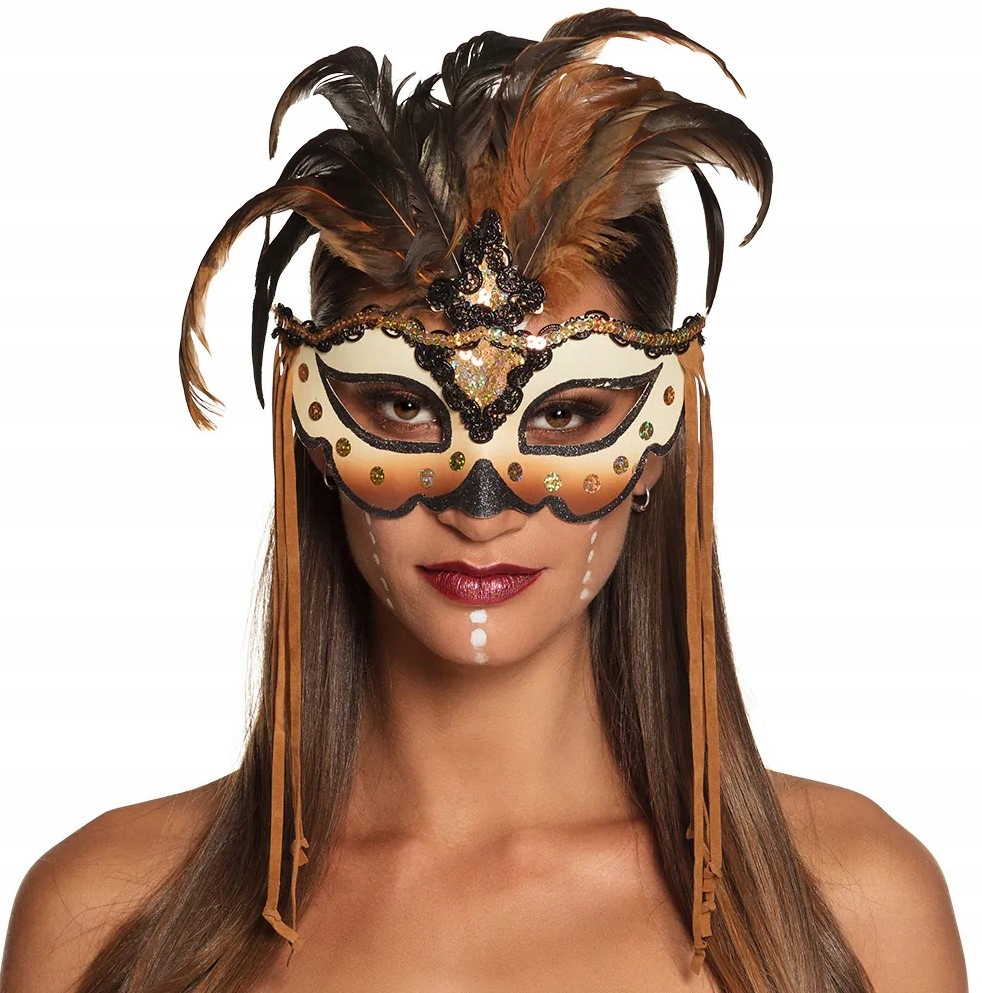- Маска, сделанная с вниманием к каждой детали. Украшен перьями и лентами.