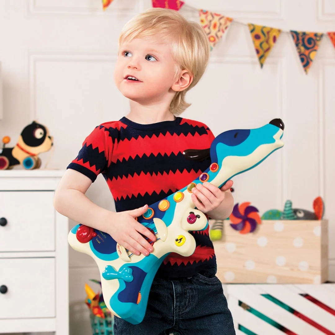НЧ-гитара Dog B. Игрушки для создания и прослушивания музыки. Загружено 3 разных звука, профессиональные гитарные аккорды и песни. Игрушка для детей 2–6 лет.