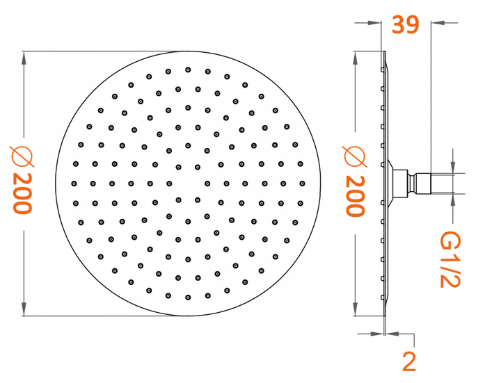 КРУГЛЫЙ ТОНКИЙ ДОЖДЕВОЙ ДУШ ДЛЯ ВАННОЙ 20 СМ, ХРОМ