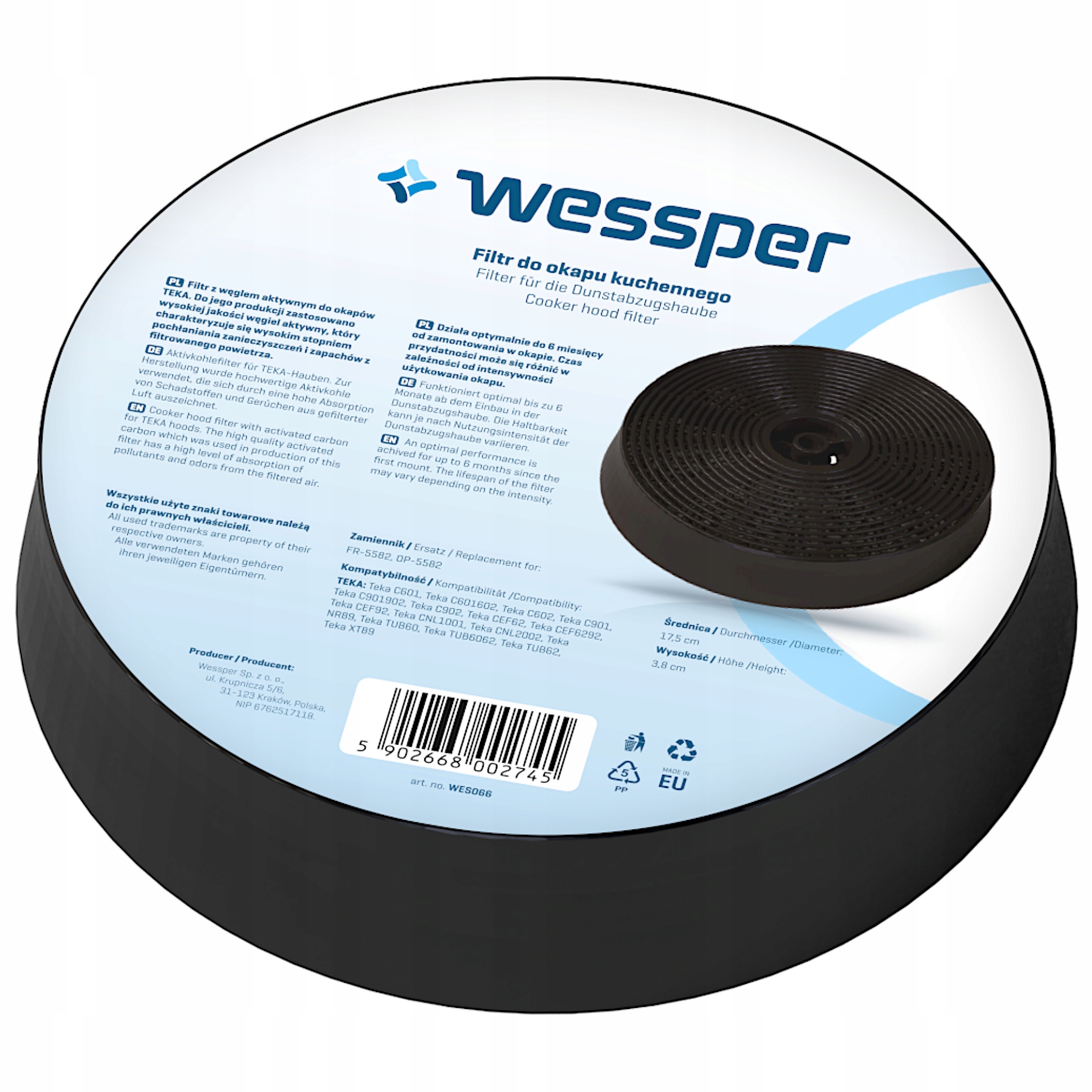 УГОЛЬНЫЙ ФИЛЬТР WESSPER ДЛЯ TEKA CNL 1001, CNL 2002 И ДРУГИХ КУХОННЫХ ВЫТЯЖЕК