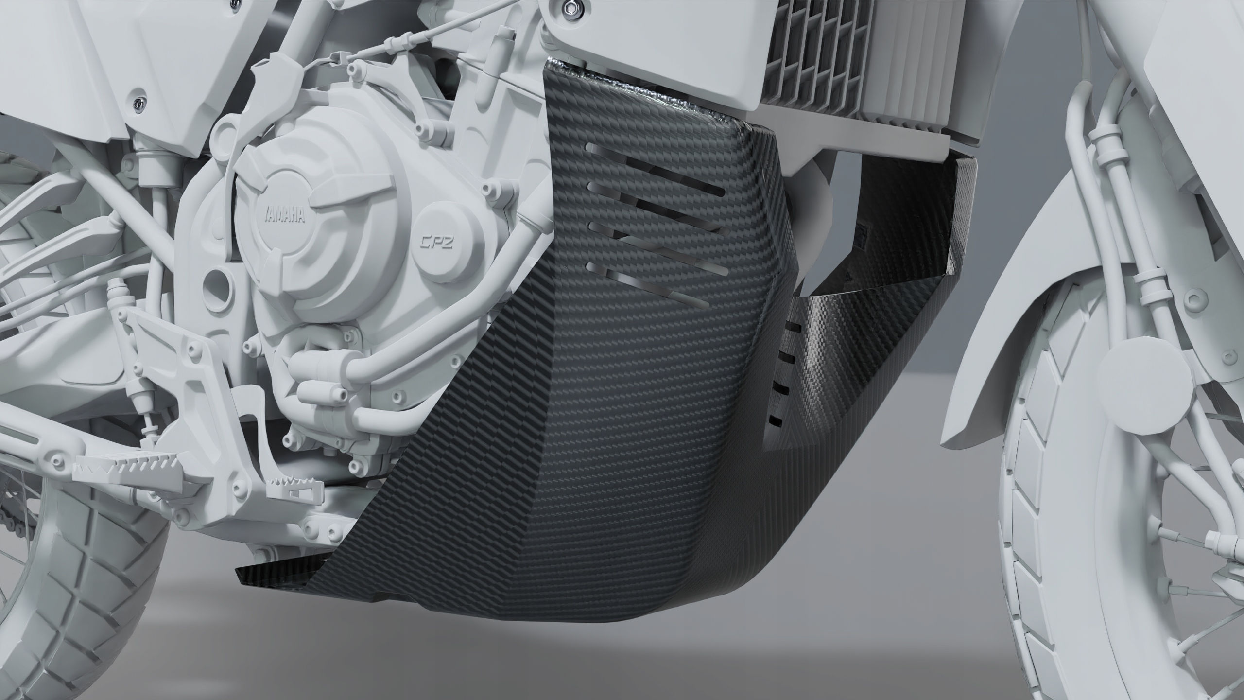 Полный набор обтекателей для Yamaha Tenere 700 содержит все элементы, которые обеспечат максимальное снижение веса при сохранении соответствующих свойств вождения. Дополнительным элементом установленного оборудования является скользящая пластина для двигателя, изготовленного из многих слоев углеродного волокна, а используемые кевларские слои обеспечивают максимальную защиту от удара с минимальной массой. Набор обтекателей от углерода до Yamaha Tenere 700 снижает массу оригинальных пластмасс наполовину, а пластина двигателя почти в 3 раза легче, чем его алюминиевый аналог. Все элементы соответствуют серийному Yamaha Tenere 700 без необходимости вносить какие -либо модификации. Весь проект был создан с помощью последних технологий и компьютерных программ для моделирования.