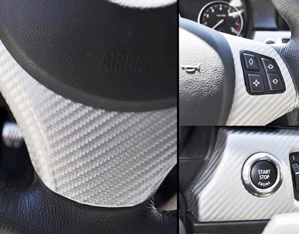 Белая фольга углеродного шпона 3D 50 см х 127 см.