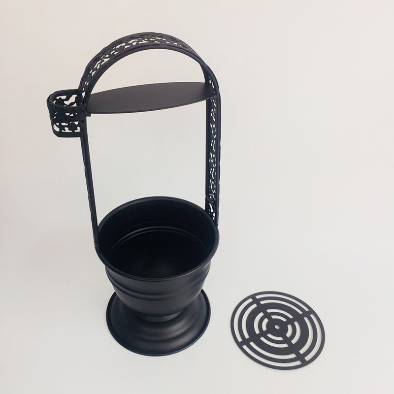 Корзина имеет удобную ручку и вешалку для щипцов для угля. Благодаря этому вы сможете свободно и безопасно переносить горящие угли. позволяя наслаждаться кальяном без лишних сюрпризов в виде следов подгорания на панелях, прожженных дыр в ковре и риска возгорания при контакте с пуховым ковром.