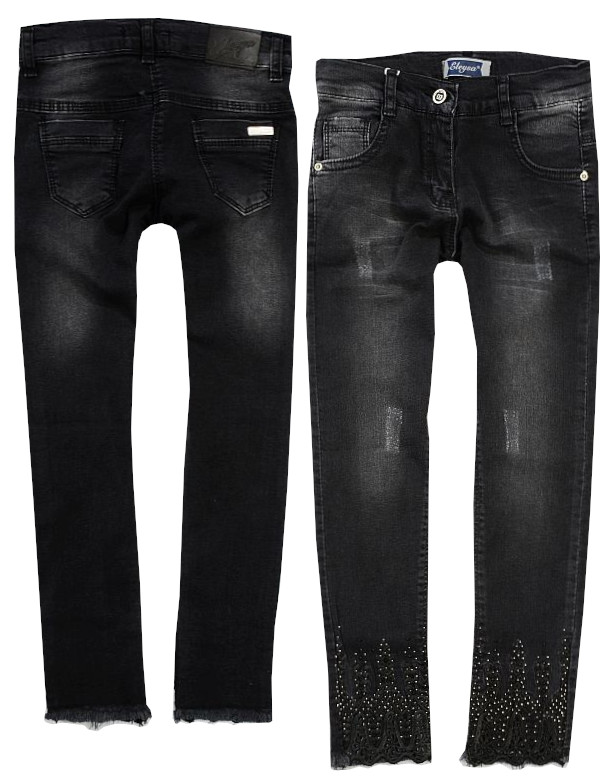 Цвет: черный, слегка шлифованная, внизу штанины растрепанная, украшена цирконами и вышивкой.
