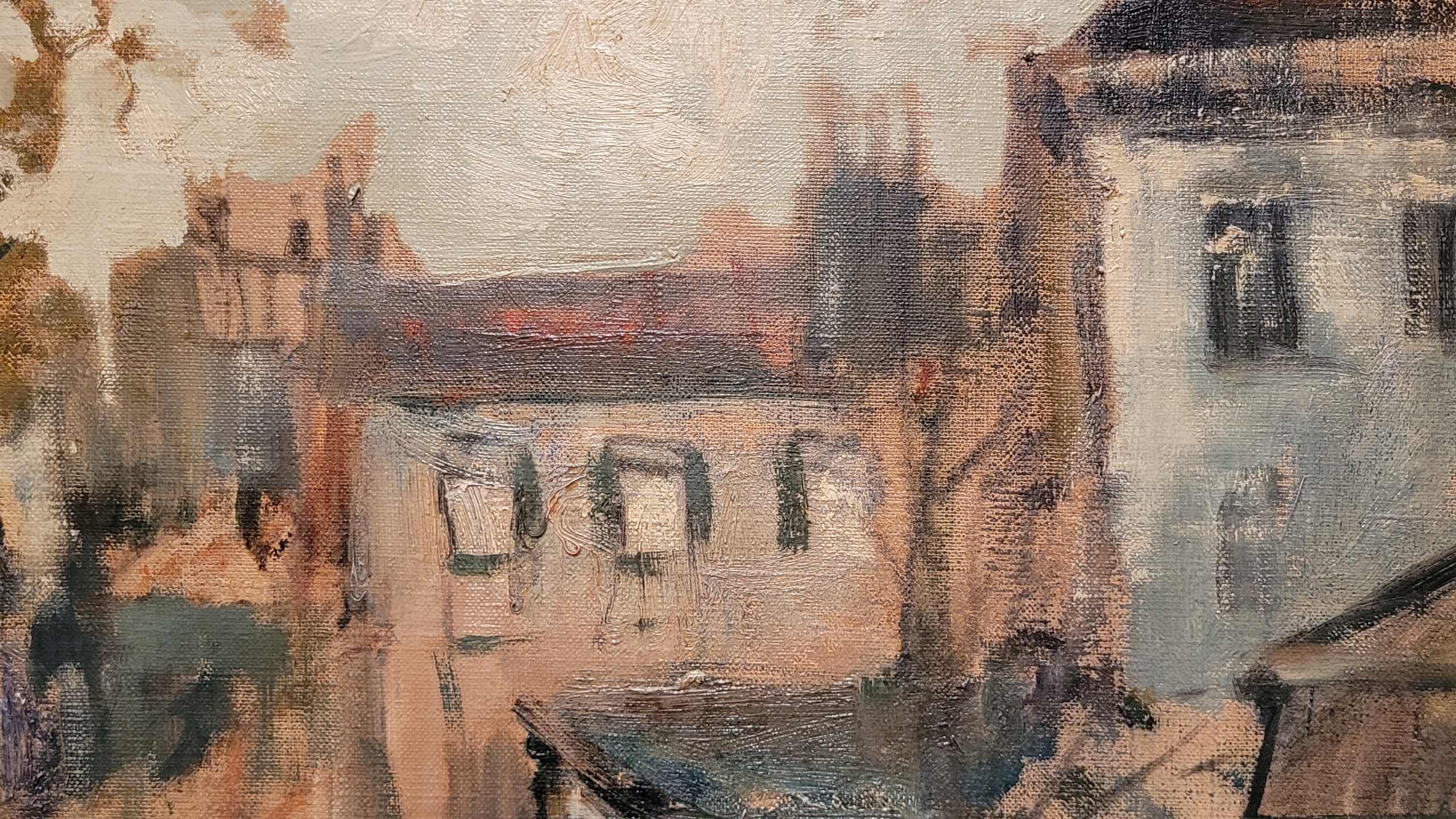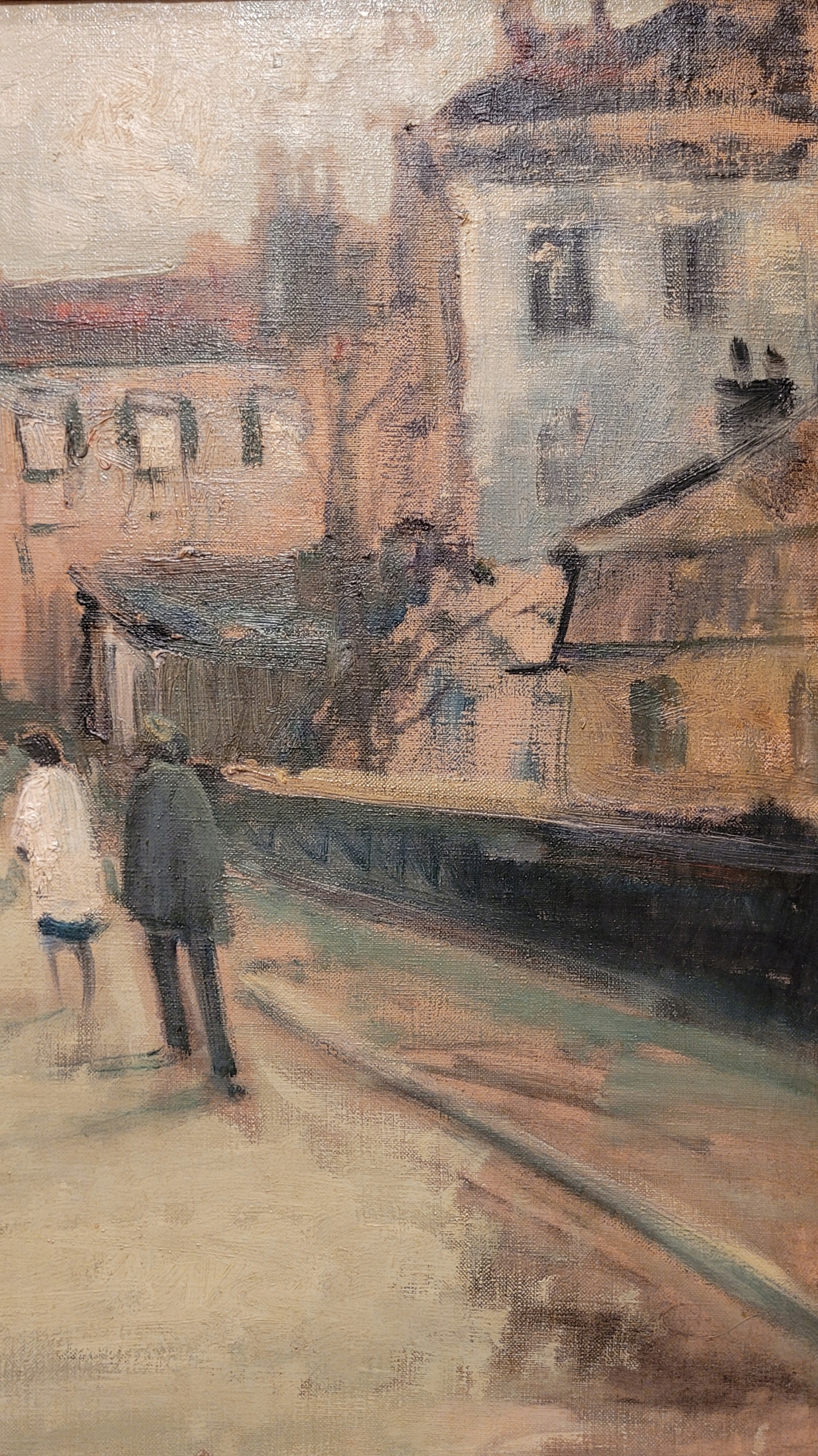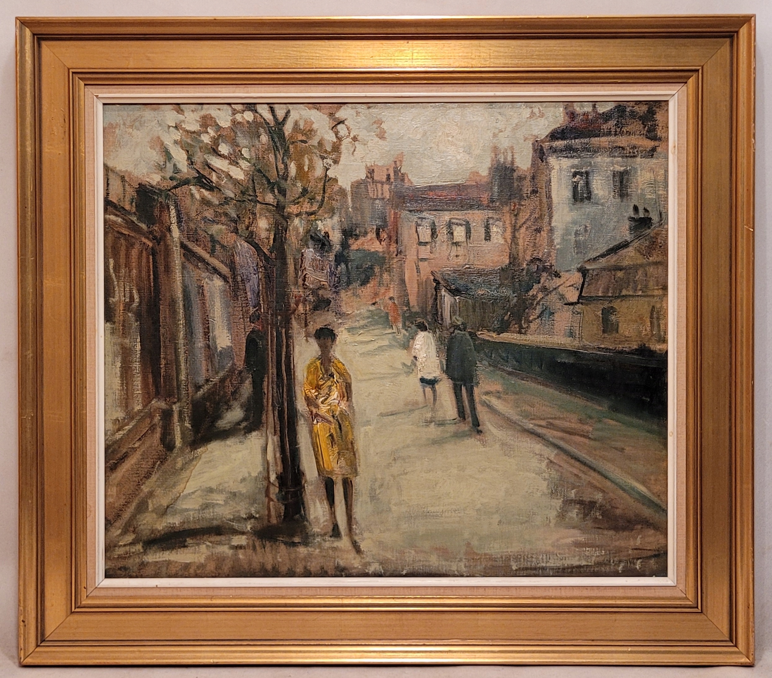 Тема продажи - красивая старая нефтяная картина "уличная сцена".