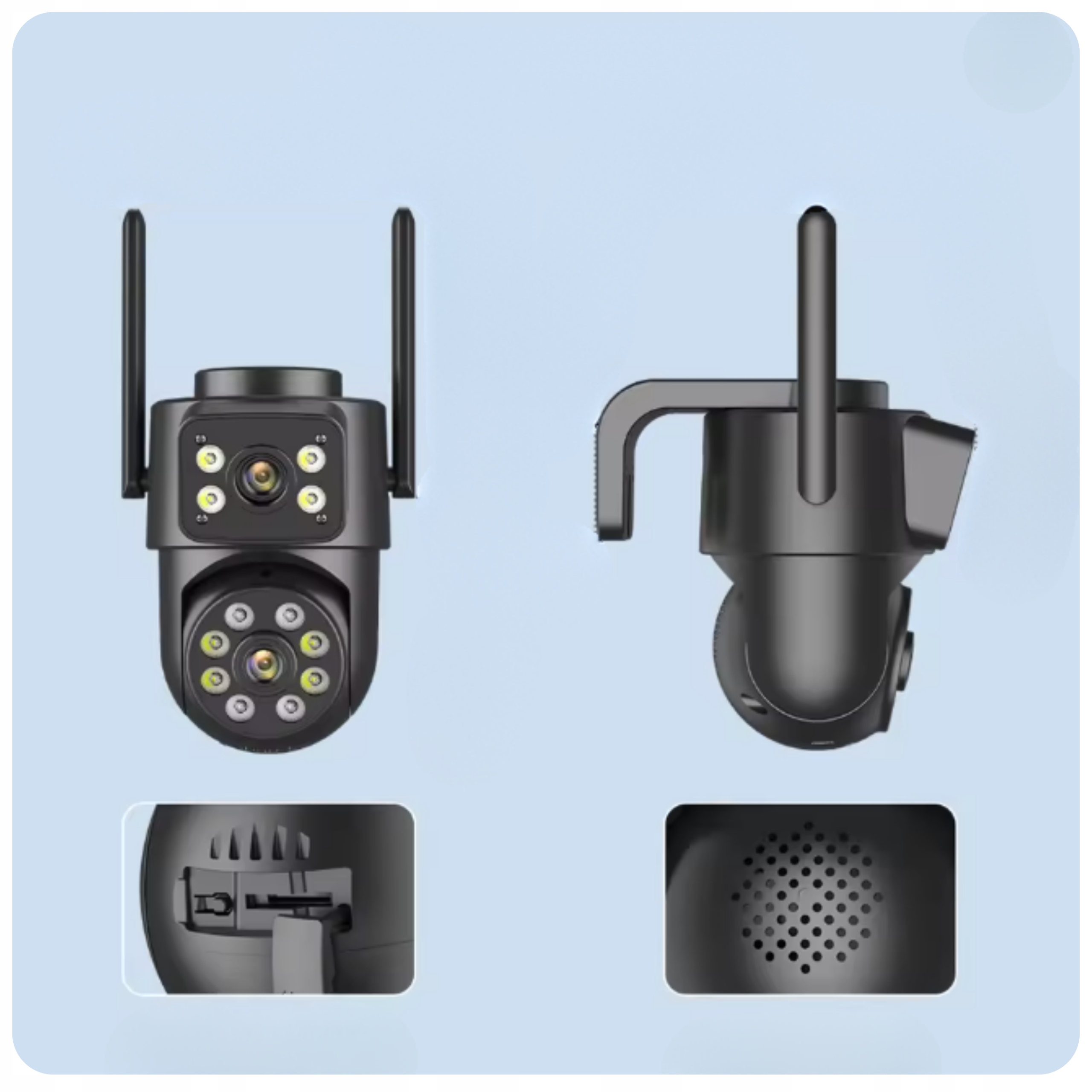 ✔️ Вращение на 360° + наклон -10–180° - охватить большую площадь без мертвых зон.