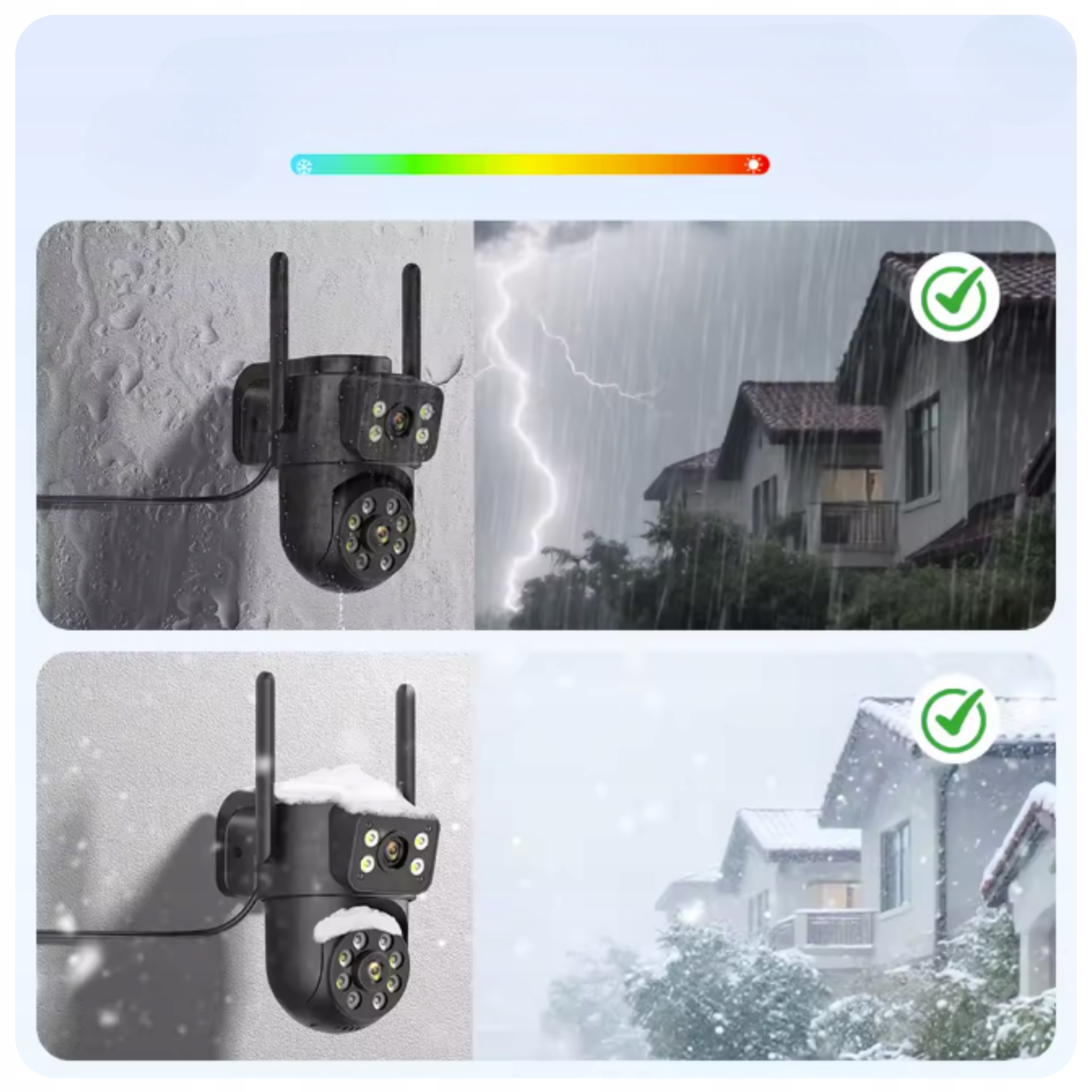 Уличная WiFi-камера с IP66 создана для дождя и пыли. Она работает при температуре от -10°C до 60°C.