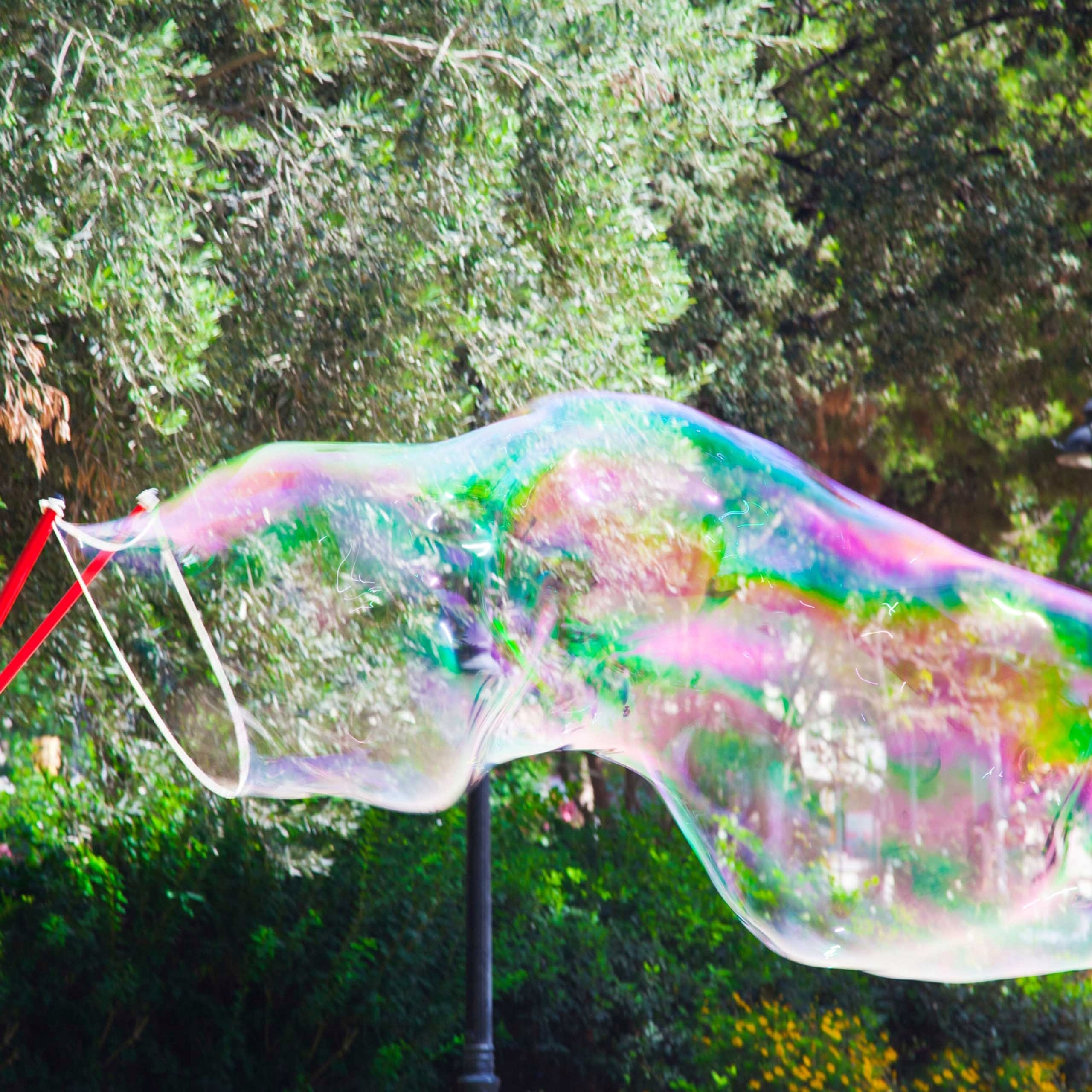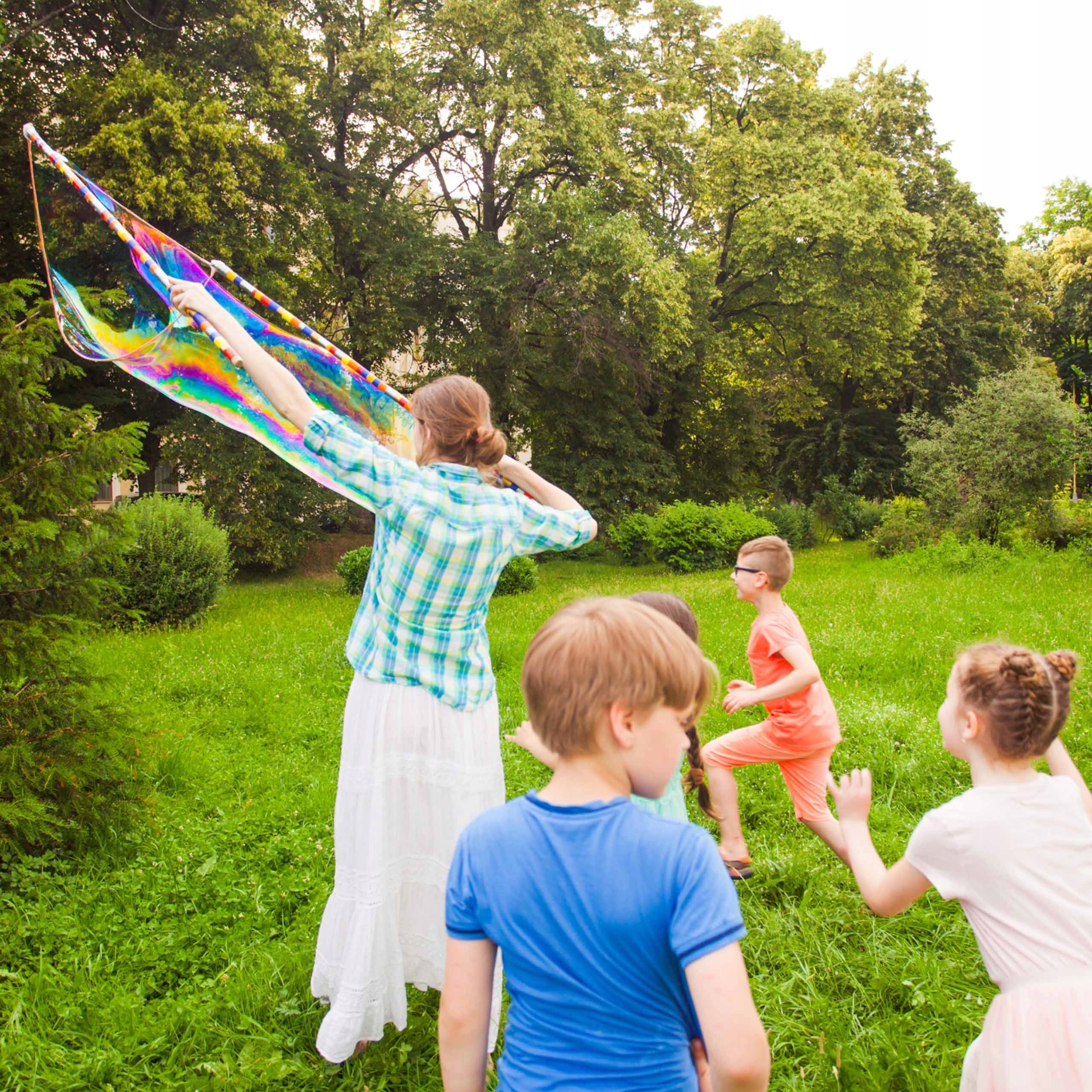 Спасибо ему, детям (и взрослым!) Они могут вызвать большие пузырьки и впечатляющие туннели пузырьков в саду, парк или на игровой площадке.