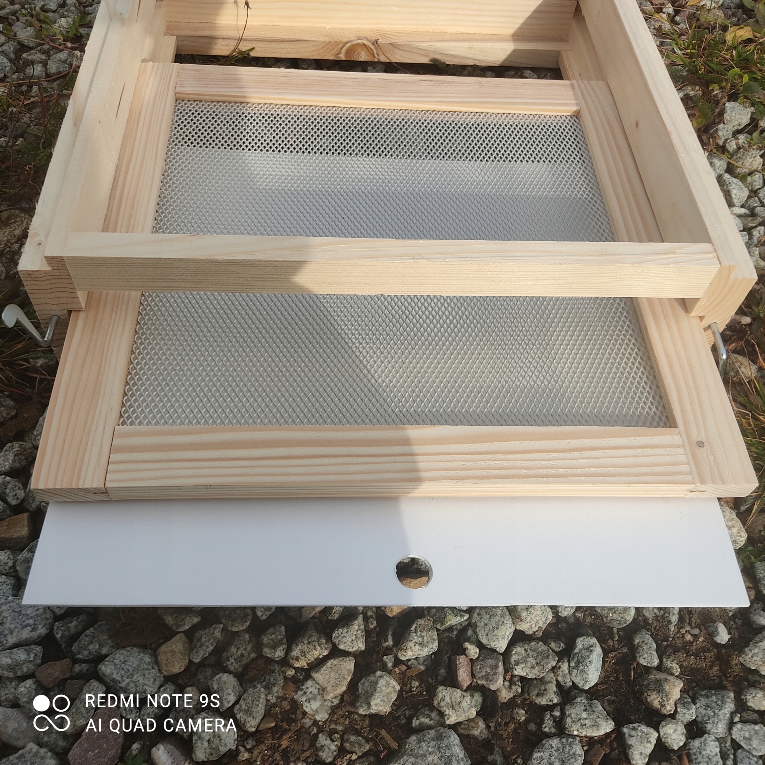 Гигиеническое дно имеет выдвижную рамку с толстой алюминиевой сеткой и выдвижную форму из белого ПВХ для борьбы с линькой и варроатозом, обеспечивая легкую и беспроблемную очистку тела. улей. Кроме того, розетка крепится на шарнирах – например, ее можно легко закрыть и переместить улей на новое место.