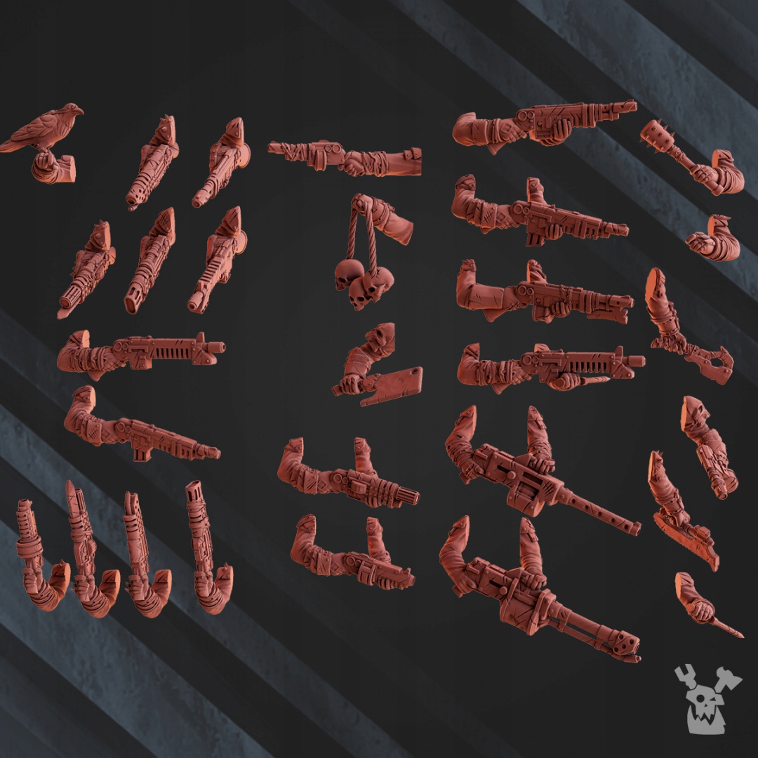 Набор из 9 моделей с оружием, идеально подходящих для культистов постапокалипсиса или Хаоса.