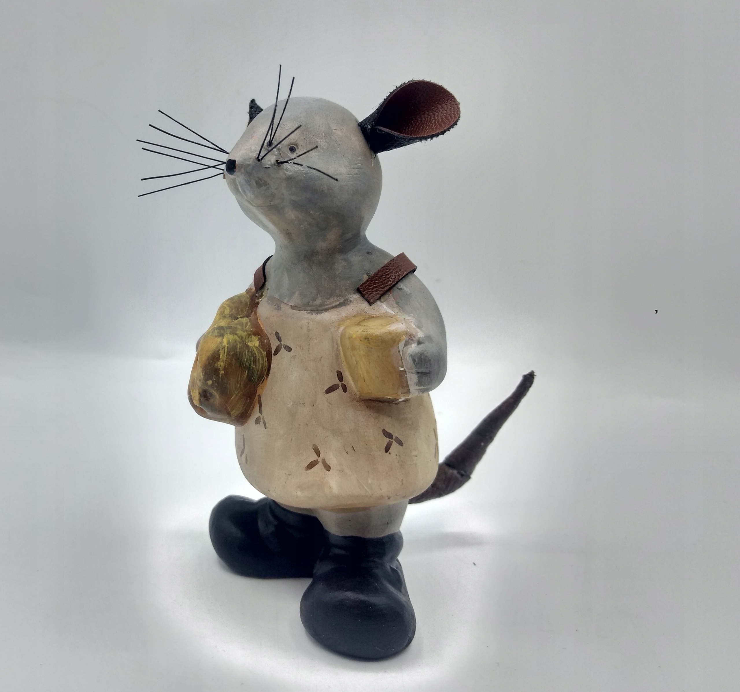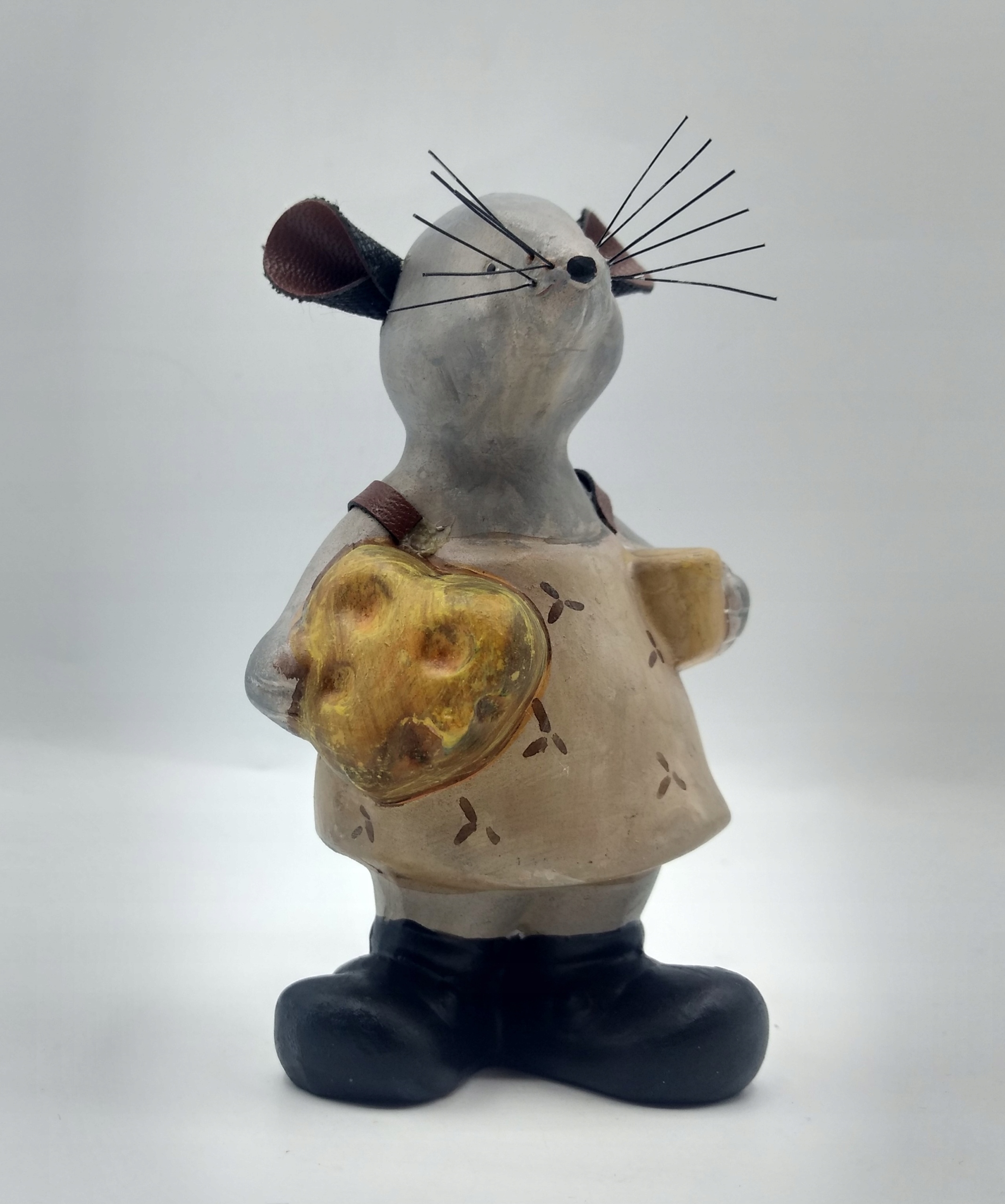 СТАРАЯ усатая мышка с сыром, красивая керамическая статуэтка,