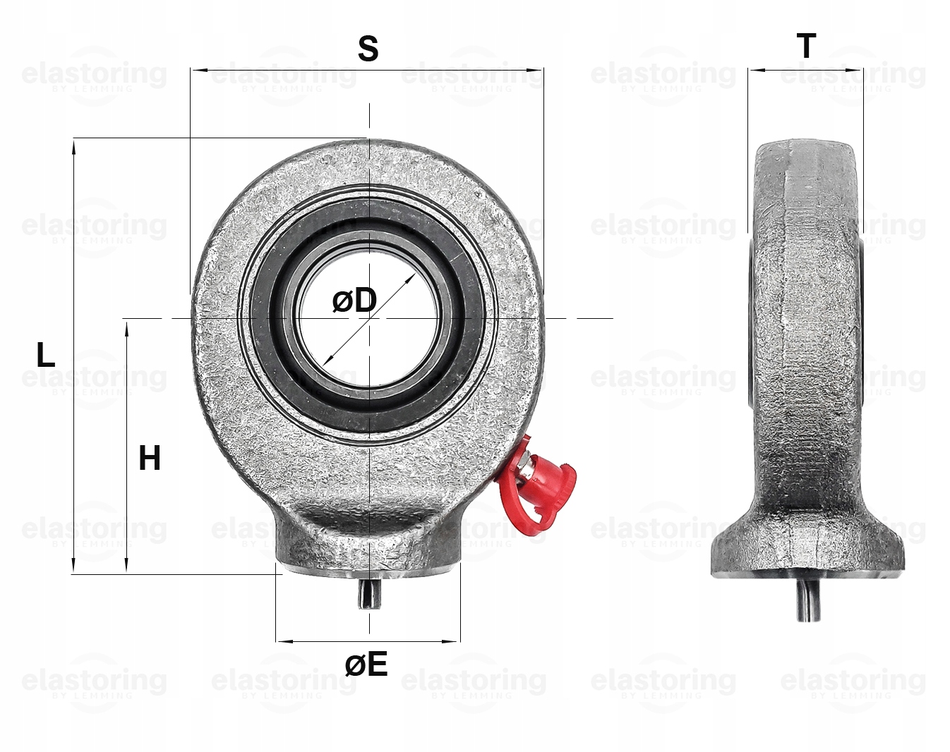 Проушина с подшипником Ø25 для приварки на штоке гидроцилиндра