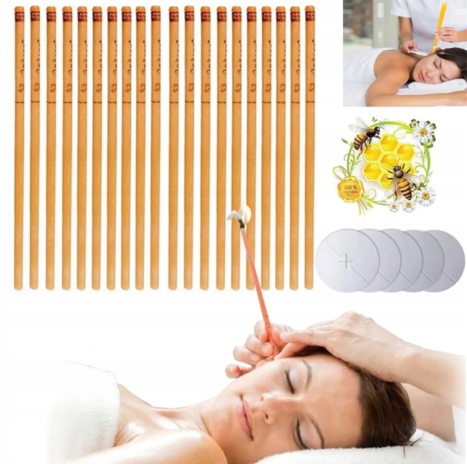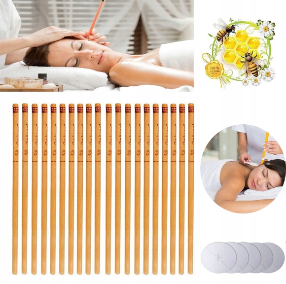 ✅Свечи ушные для удаления ушной серы Воск натуральный пчелиный 20 штук с дисками