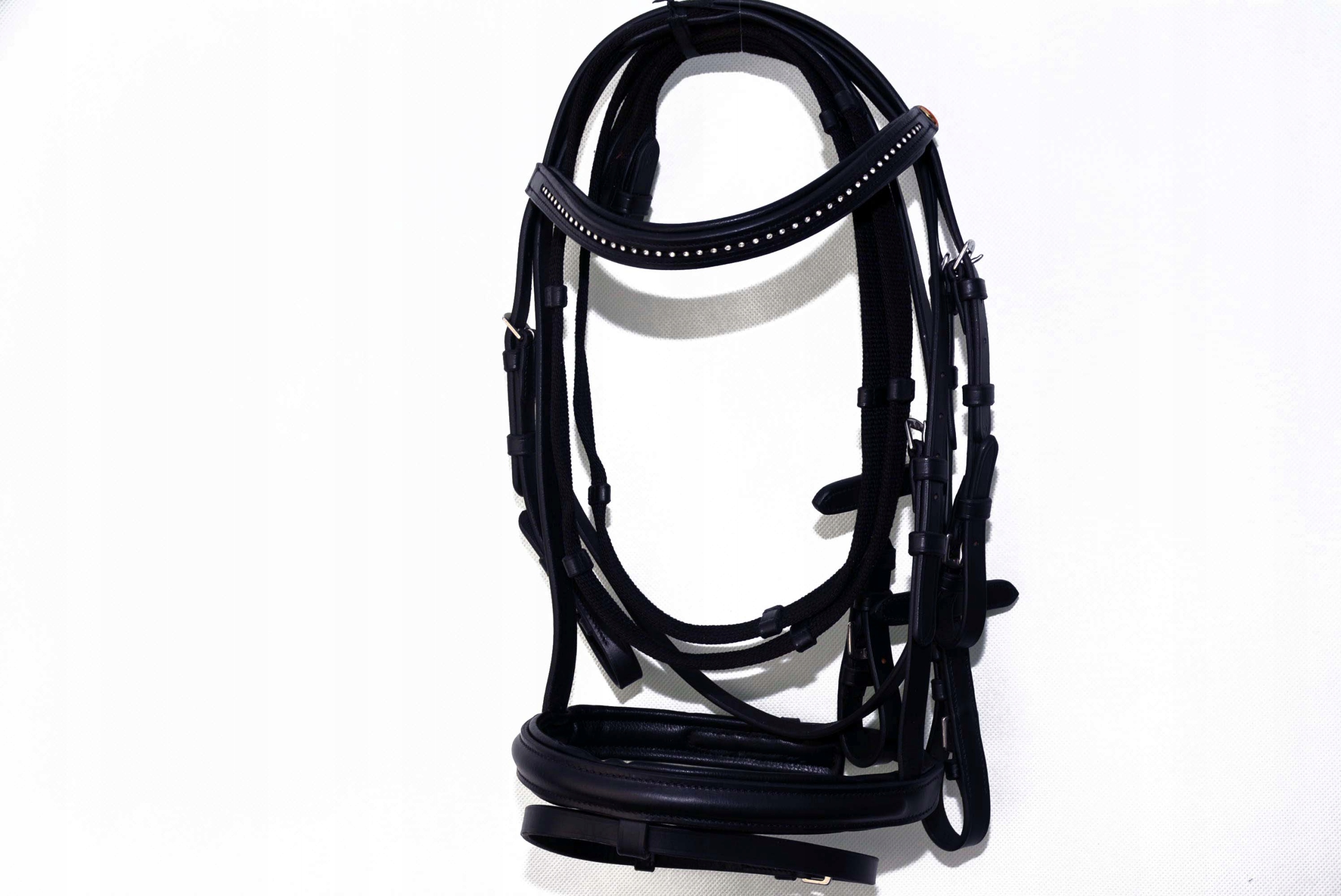 Анатомическая уздечка + поводья, профилированный размер. X-ПОЛНЫЙ. Уздечка производится на фабрике Saddery в Англии. Изготовлен из коровьей кожи высочайшего качества, очень мягкой и приятной на ощупь, затылочная часть и оголовье обтянуты мягкой кожей для предотвращения потертостей. Уздечка застегивается и регулируется с помощью устойчивых пряжек, изготовленных из очень хорошей нержавеющей стали. Смело покупайте.