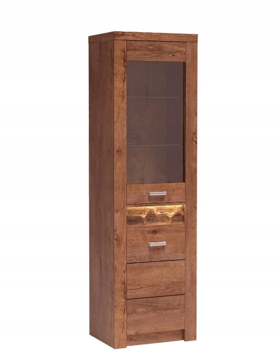 Высокая витрина для гостиной Indi – это массивный предмет мебели, который подчеркнет стиль и элегантность вашей гостиной или офиса. Витрина Indi имеет две стеклянные фасады и стеклянные полки позади них. При производстве витрины использовано закаленное стекло, которое гораздо более устойчиво к механическим повреждениям и царапинам.