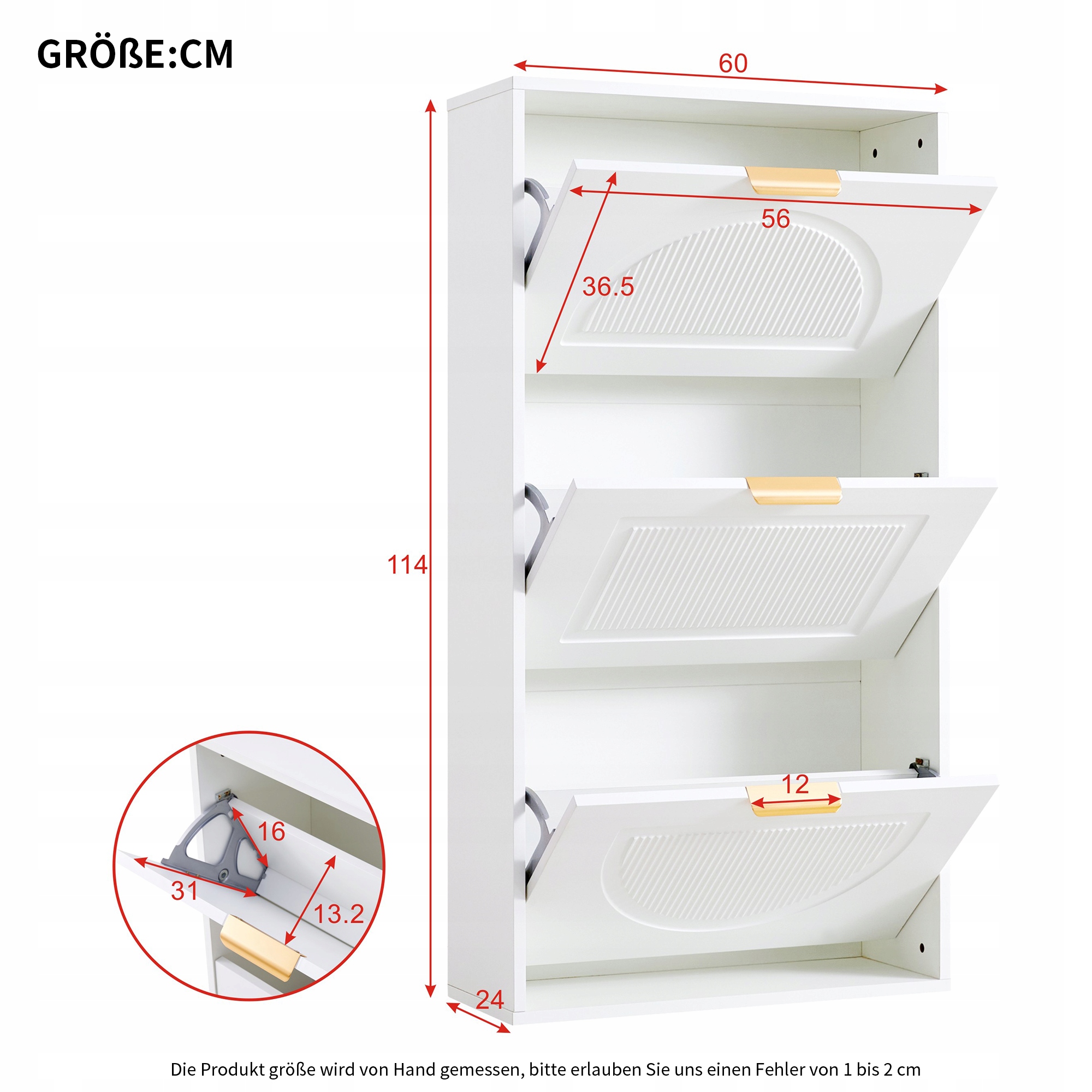 обувь для узкой обуви с 3 клапанами, шкафом для обуви, белым шкафом для обуви, груди для коридора, гостиной, белой, размеры: 60 x 24 x 114 см