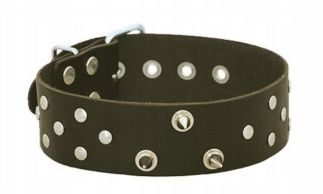 Ошейник кожаный, узкий, с заклепками и заклепками, без отделки и полукругом для поводка.