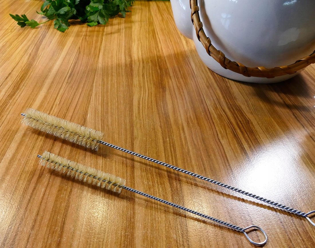 Представляем четыре специализированные узкие щетки, дифференцированные по длине и толщине рабочего элемента. Полезно дома, на кухне, в ресторане. Идеально подходит для очистки узких отверстий, мелких элементов, пробирок, пробирок, мерных чашек и кофемашин. Зубные щетки изготовлены из натуральной щетины и оцинкованной проволоки.