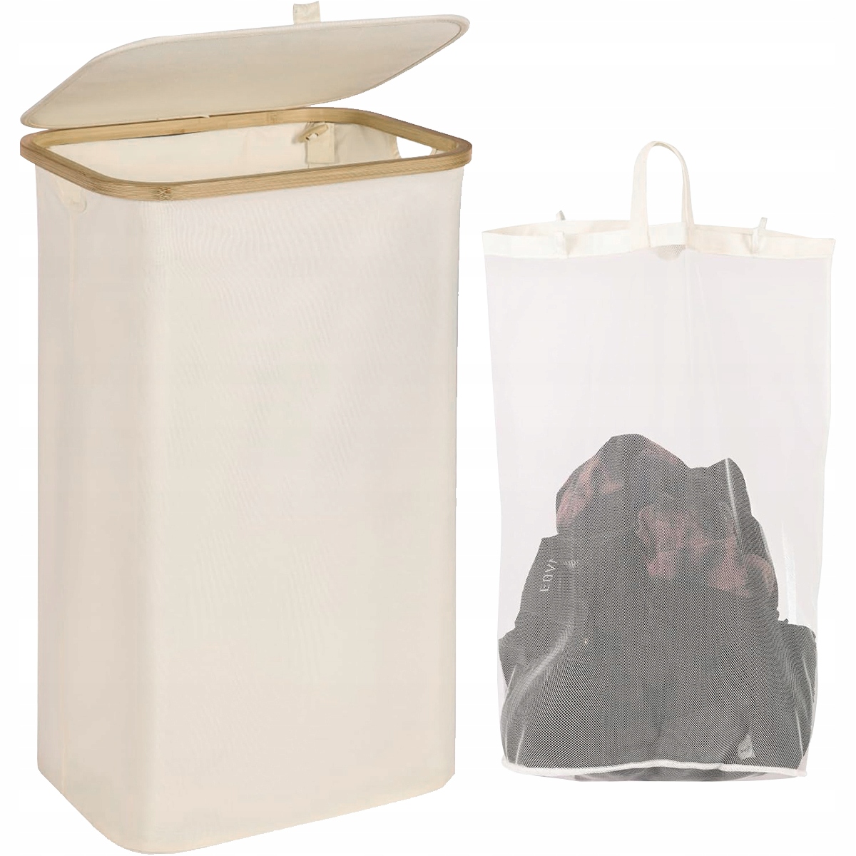 Узкая корзина для прачечной 63 л (41*22*70 см), узкая корзина для прачечной с крышкой, бежевая корзина для бежевой стирки с бамбуковыми ручками и съемной сумкой для прачечной, спальни, ванных комнат h1>