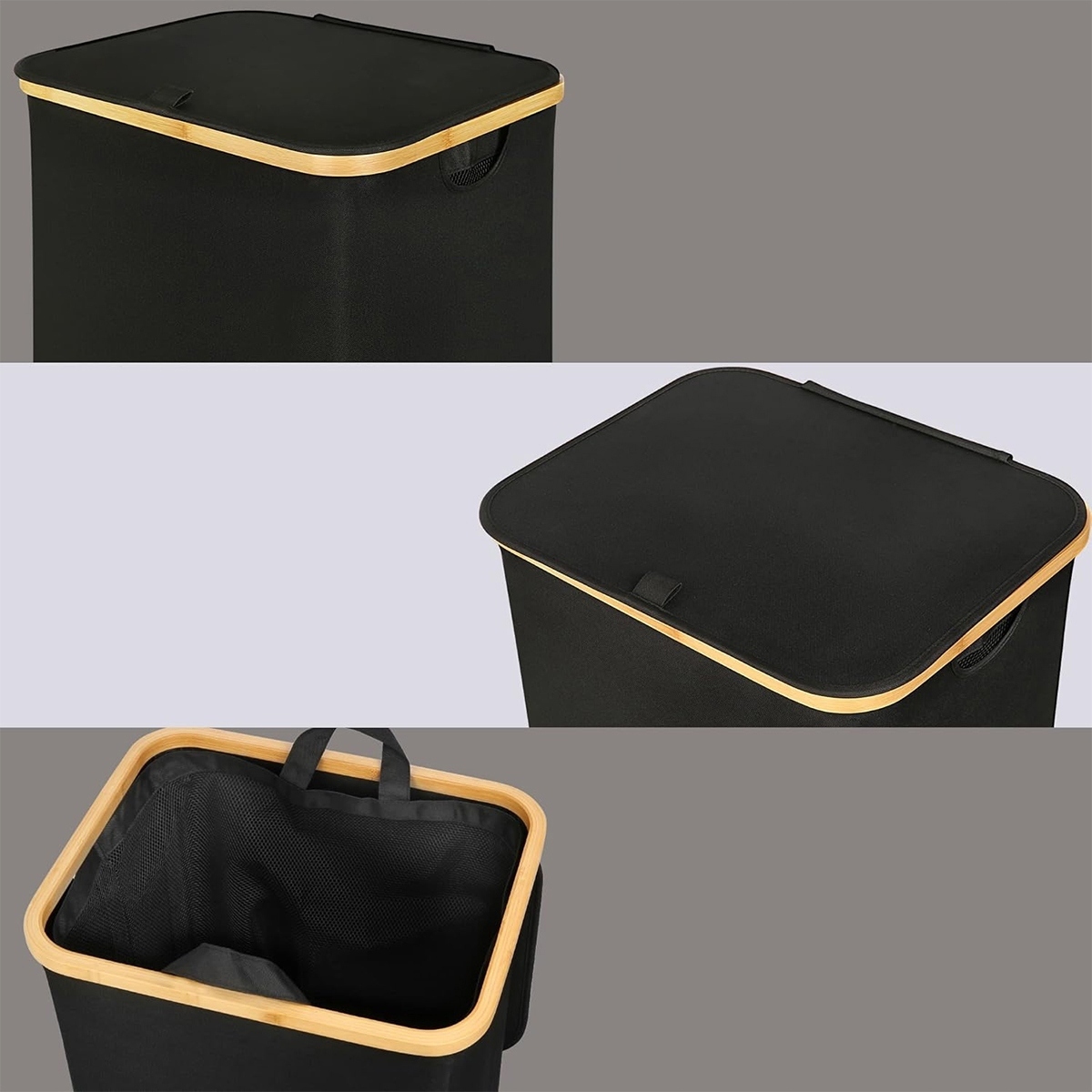 Корзина для белья изготовлена из высококачественного бамбука и водонепроницаемой ткани, толще, чем у других брендов, и не порвется и не повредится после длительного использования. Бамбуковая ручка карбонизирована, что делает ее гладкой и не повредит руку во время использования.