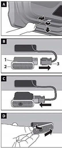 a. Вытащите старую лампу, подрывая и нажимая отверткой пластикового элемента, удерживающего лампу в отверстии. Лампа должна отделиться от крепления.