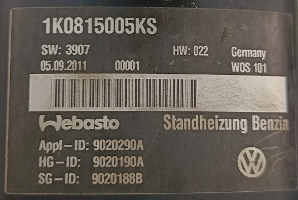 VW GOLF VI 6 11 R WEBASTO СТОЯНОЧНЫЙ ОБОГРЕВАТЕЛЬ