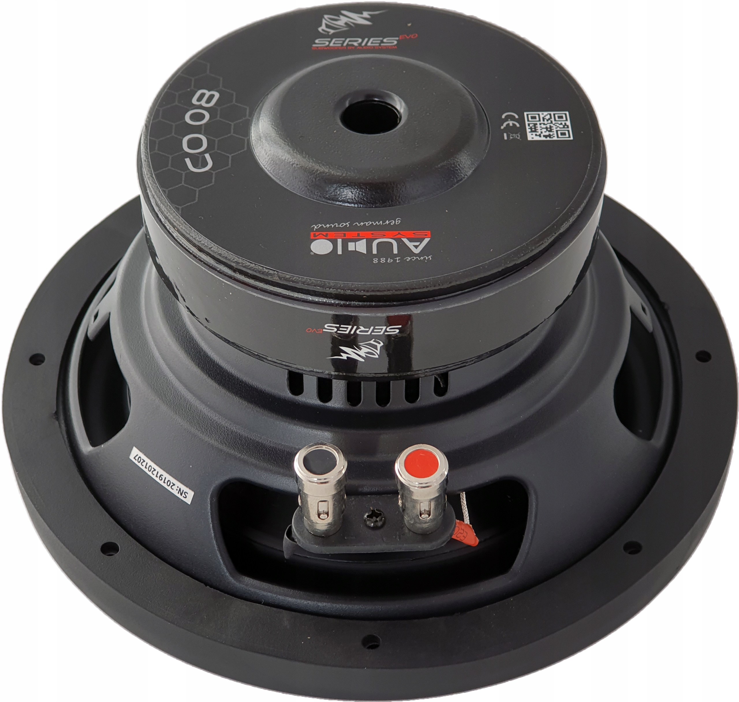 - Сабвуфер аудиосистемы CO 08 со среднеквадратической мощностью 180 Вт.