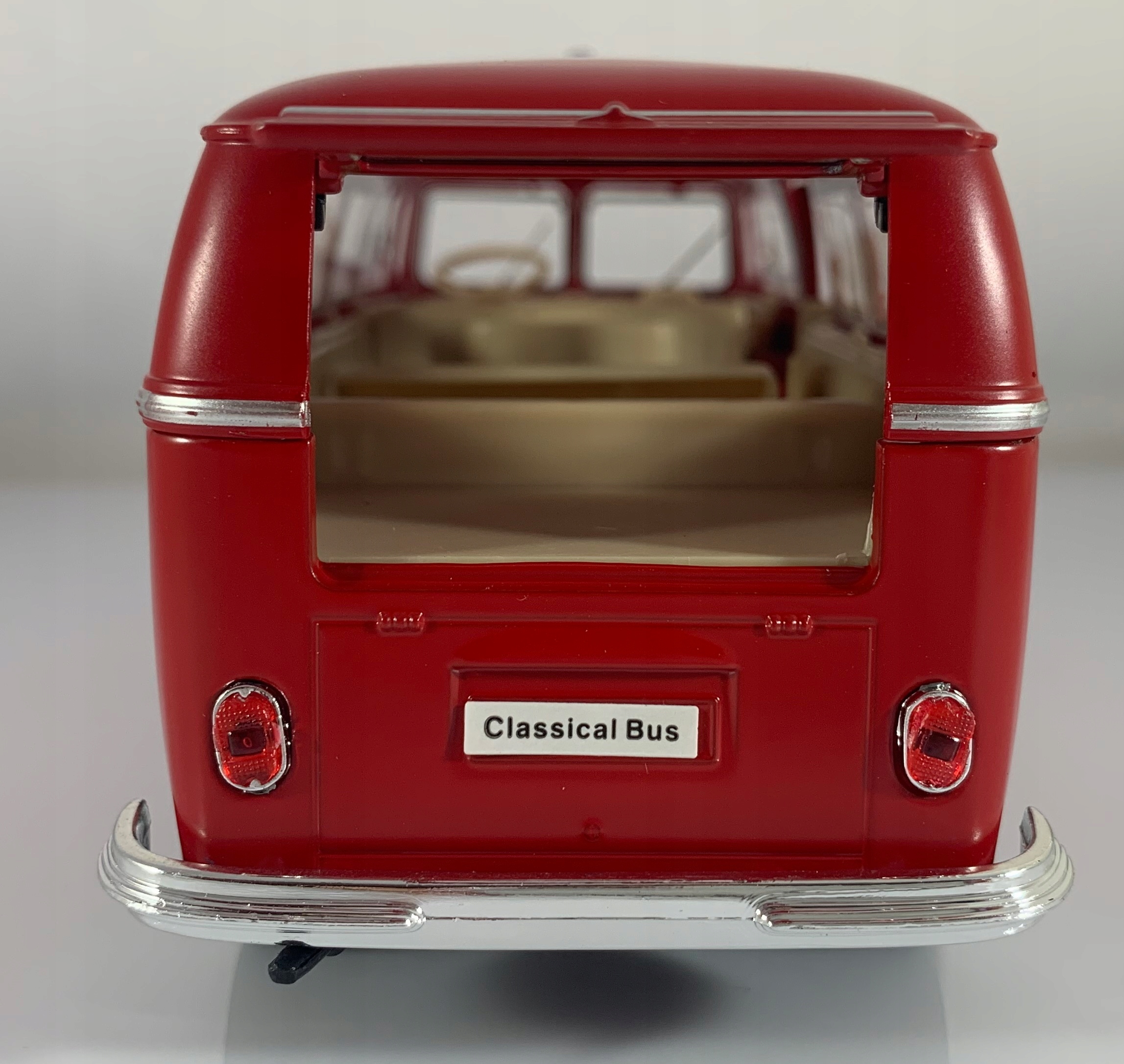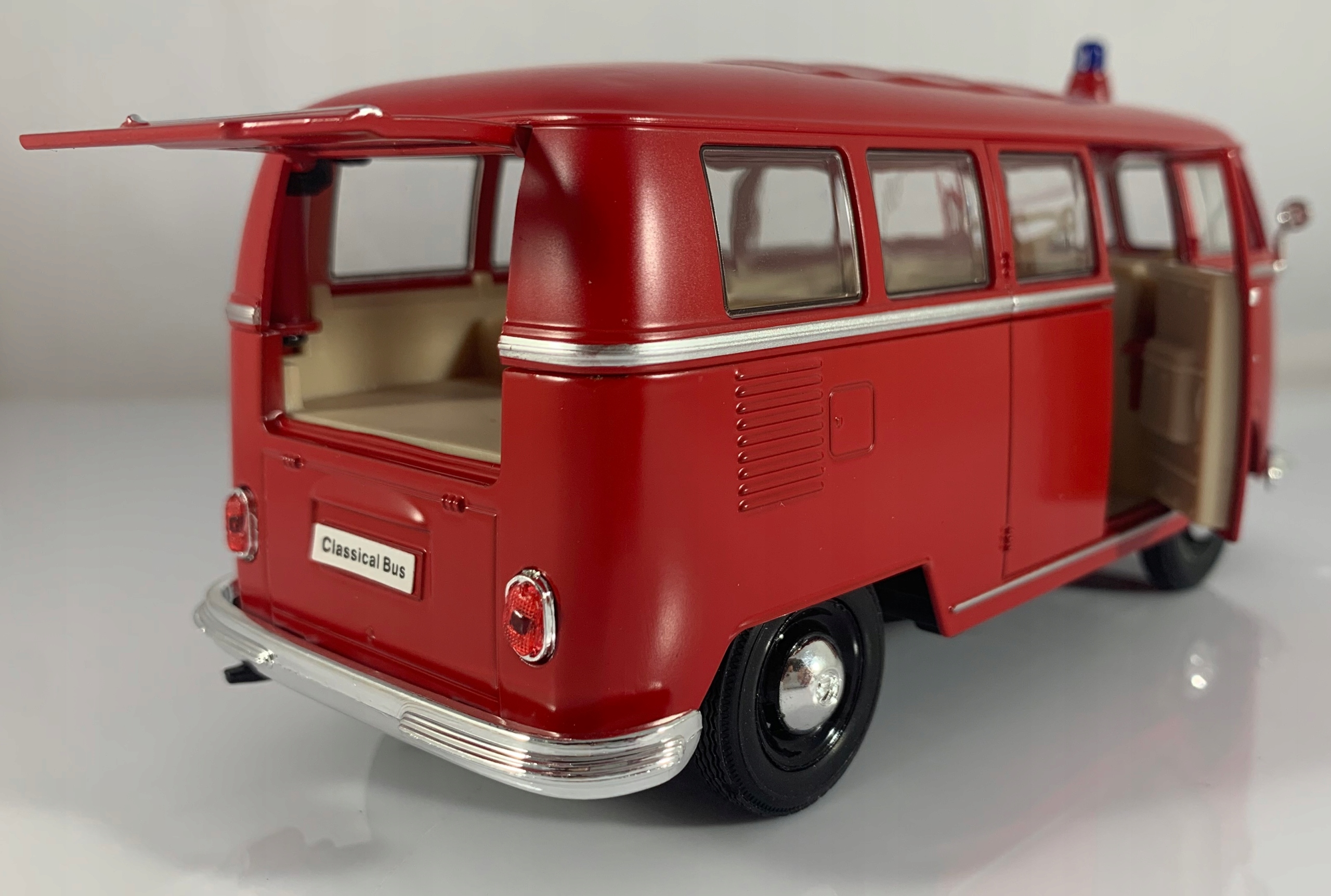 Модель автомобиля VW T1 отличается вниманием к деталям. Имеет подвижные элементы - двери, колеса, заднюю крышку.