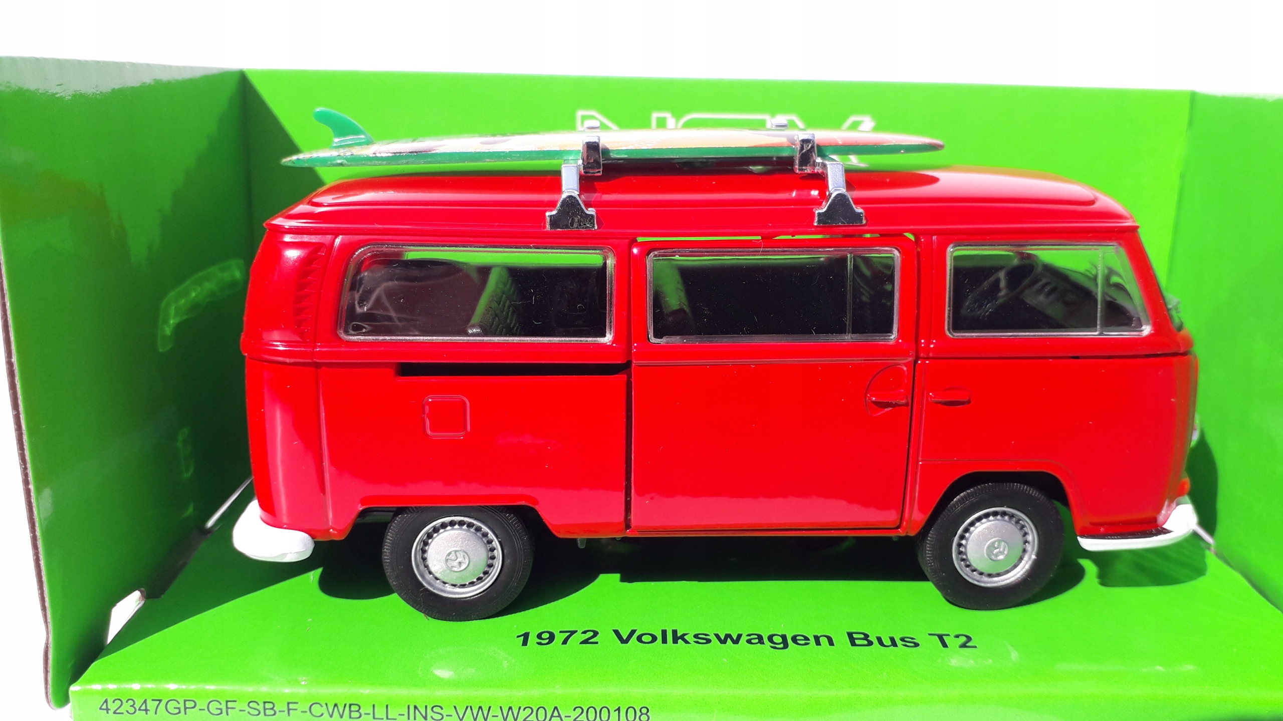 VW Volkswagen T2 Bus 1972 Red с металлической доской Welly 1:34
