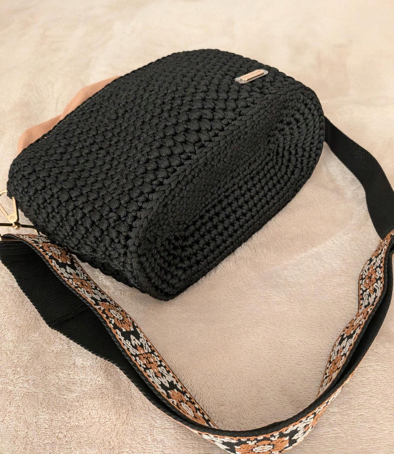 Сумка крючком из полиэфирной нити 30×29 см с сумкой и ремешком.