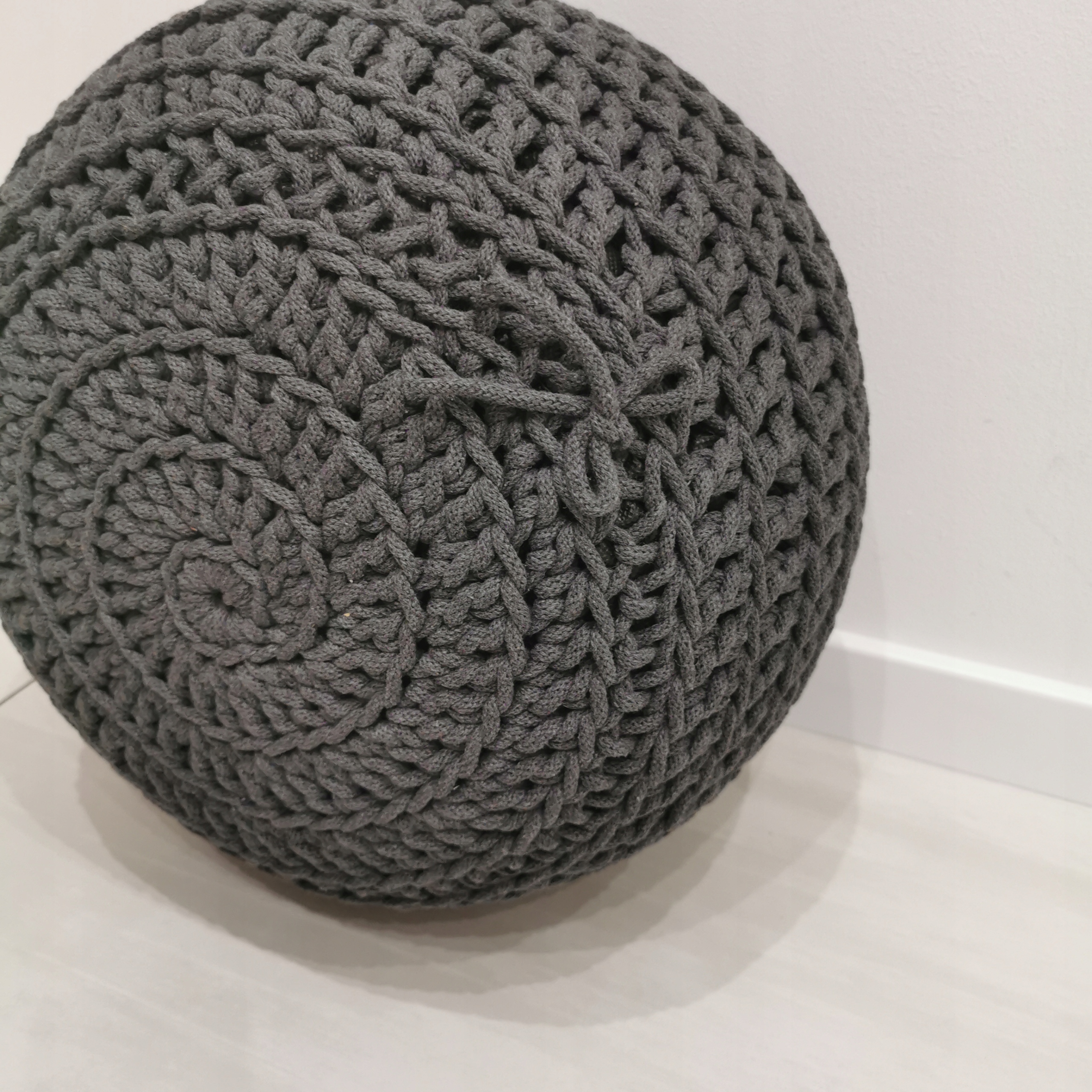 Пуф ручной работы из толстой хлопковой нити диаметром 5 мм.
