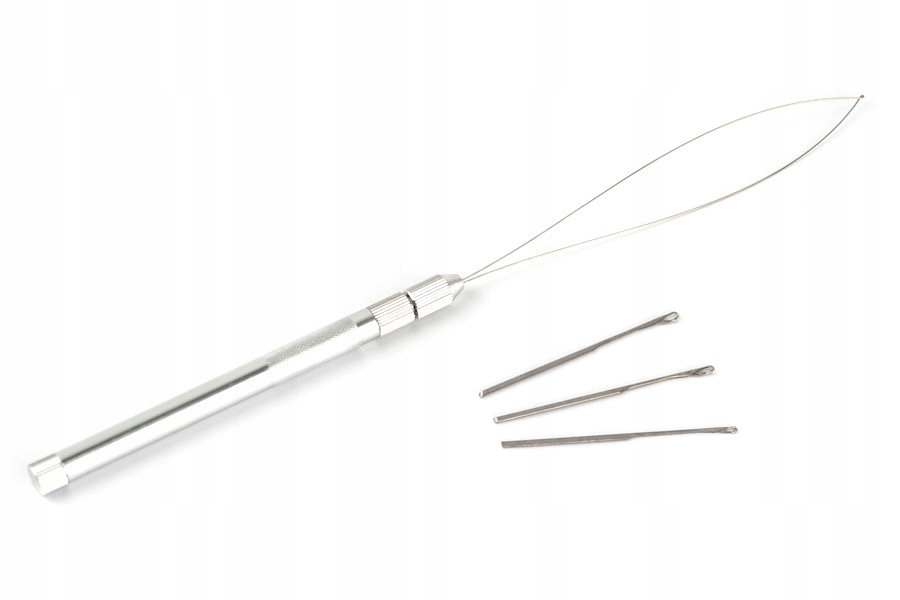 Прочная петля из проволоки делает работу с наращенными волосами беспроблемной, В комплект дополнительно входят 3 трещотки разных размеров, позволяющие каждый раз выбирать наиболее подходящий наконечник.