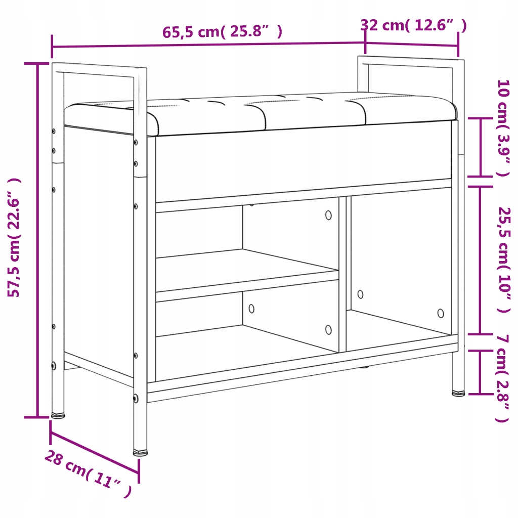 Скамья для обуви с подушкой, дымным дубом, 65,5x32x57,5 см