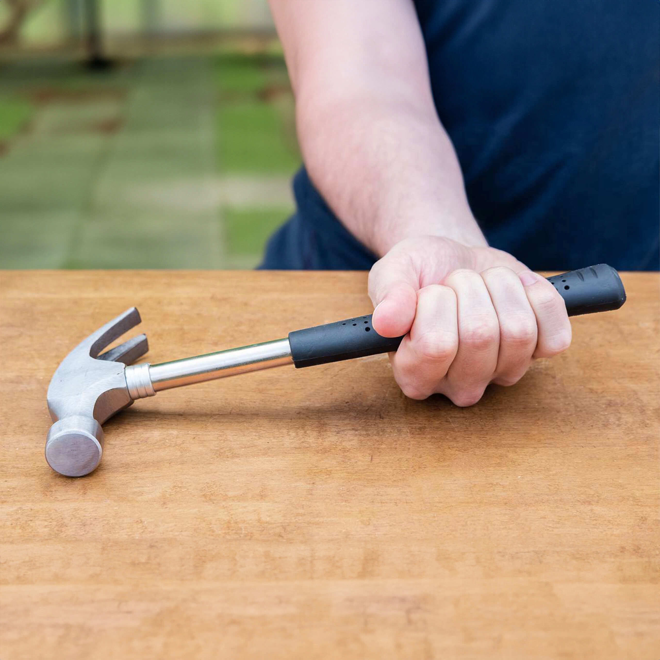 - Это очень надежный предмет. Его можно использовать практически в любой работе, требующей забивания или выбивания гвоздей, а также пробивания или удара другим инструментом. Изготовлена из высококачественной стали, ручка закрыта. с резиной, благодаря чему молоток устойчиво лежит в руке и не создает риска выскальзывания.