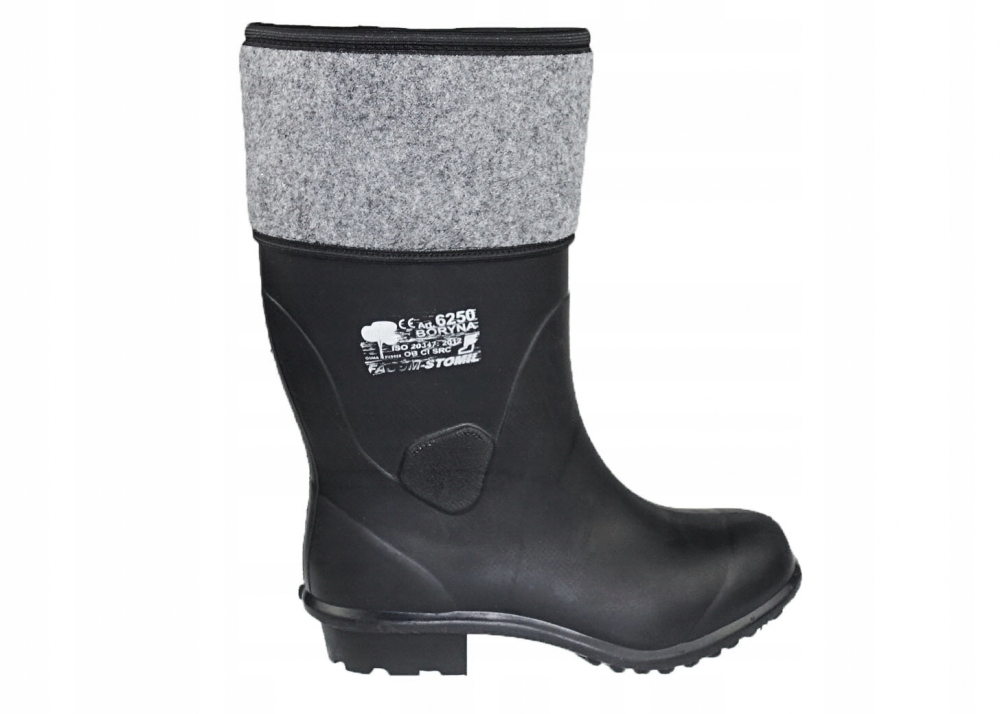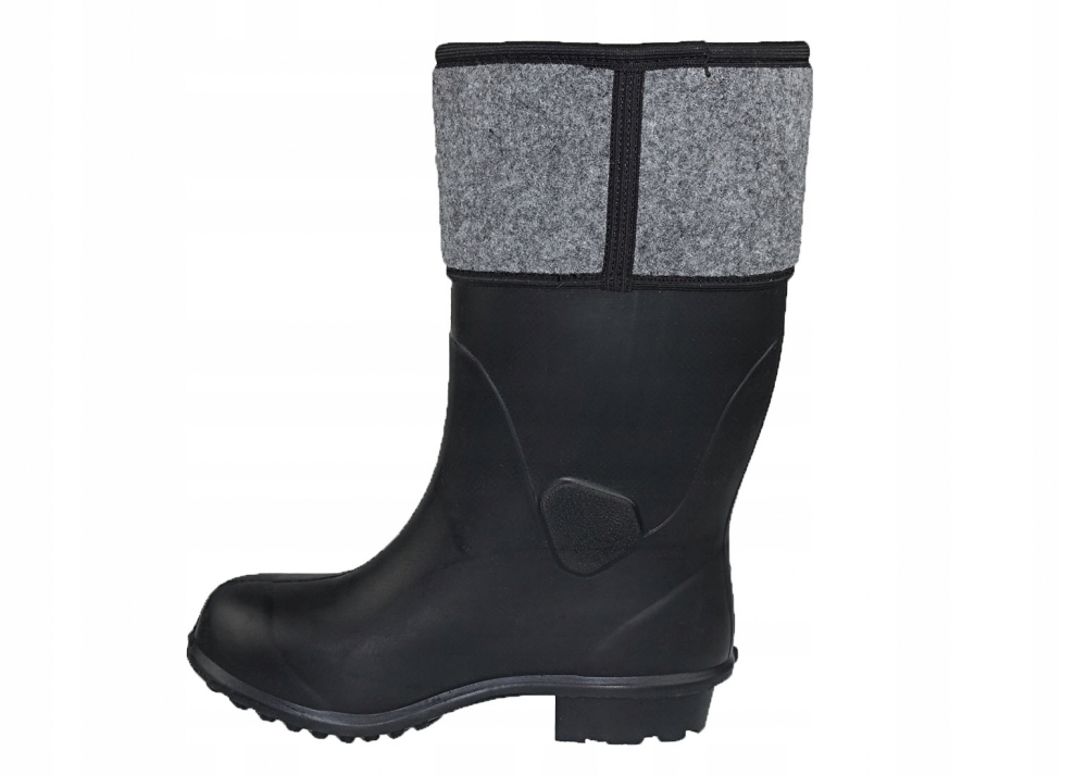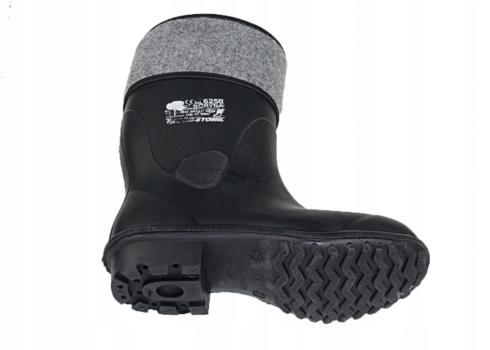 Войлочно-резиновая обувь предназначена для работы на открытых пространствах в условиях воды, влаги и холода. Они защищают пользователя от скольжения, что является очень важной особенностью обуви в плане безопасности при работе. Валяная обувь изготавливается методом ручного изготовления и вулканизации в котле. Внутренняя часть обуви выполнена из утепляющего верха из нетканого материала, покрытого резиной примерно на 2/3 высоты. Используемые материалы и конструкция обуви обеспечивают изоляцию от низких температур (холодоизоляция подошвы – температура внутри обуви опускается ниже 10 градусов Цельсия).
