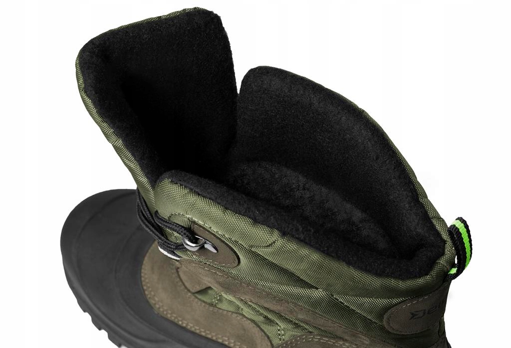 Внутренняя часть обуви выполнена из комфортного микрофлиса. Тепловой комфорт обеспечивает слой искусственного микроволокна между внешним и внутренним слоями. Черно-зеленое сочетание материалов оценят не только рыболовы, но и охотники, туристы и все другие любители природы.