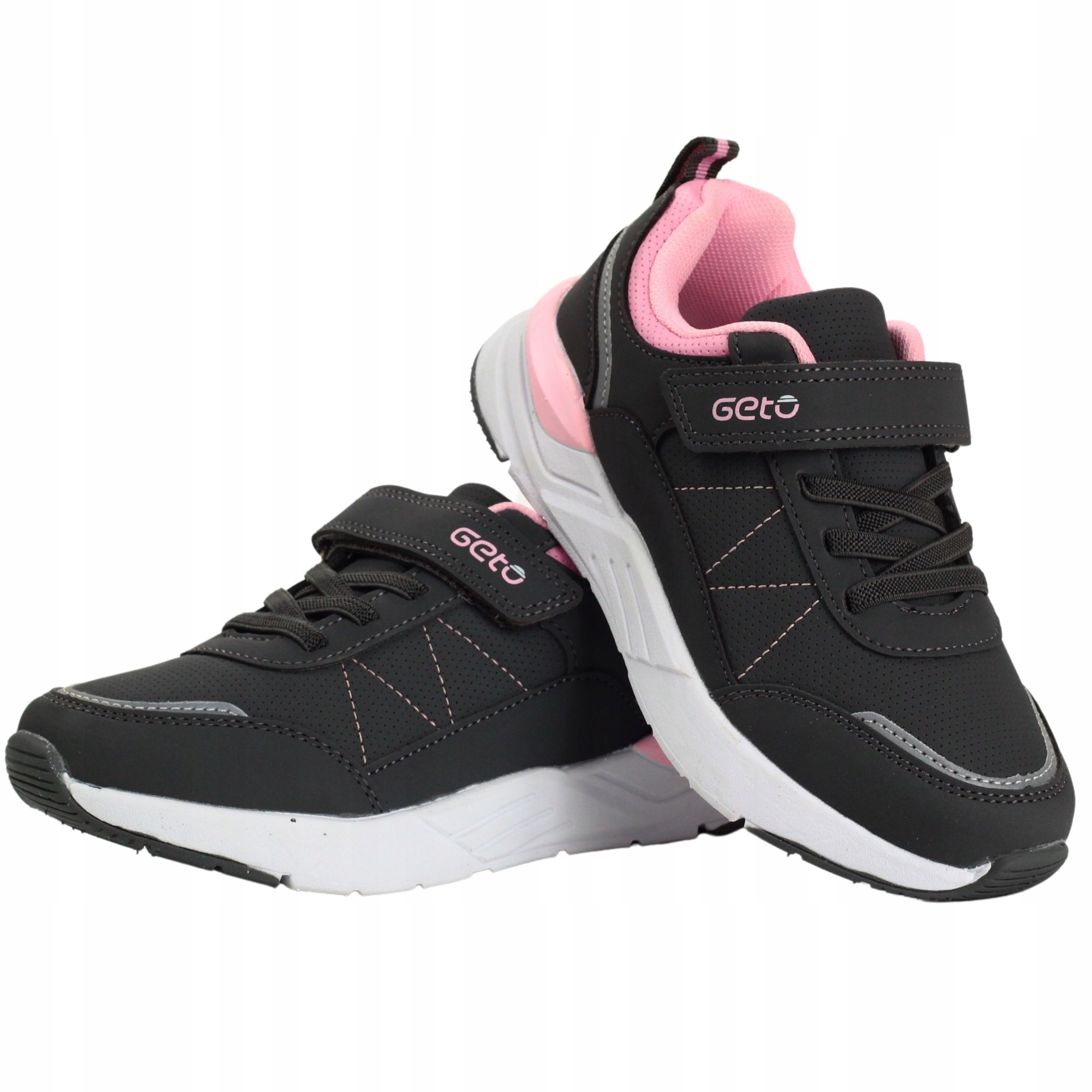 Спортивные туфли для девочек на застежке-липучке, серого цвета с розовыми элементами. Дополнительно оснащены резинками, имитирующими шнурки. Они идеальны в качестве повседневной или школьной обуви – у них белая подошва с серыми деталями. Кроме того, они легкие, мягкие и обеспечивают удобство и комфорт использования. Кожаная вставка. Застежка-липучка облегчает надевание обуви.