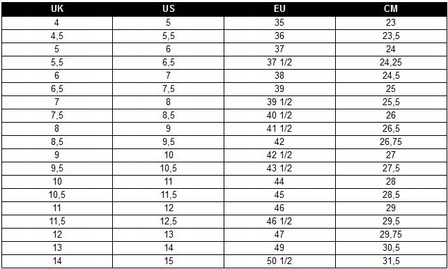 Положите лист бумаги на пол так, чтобы один из его краев прилегал к стене. Встаньте на бумагу, упираясь пяткой в стену. Отметьте карандашом место, где заканчиваются пальцы. Измерьте на бумаге расстояние между стеной и отмеченным вами местом, а затем сравните эту длину с длиной в нашей таблице размеров.