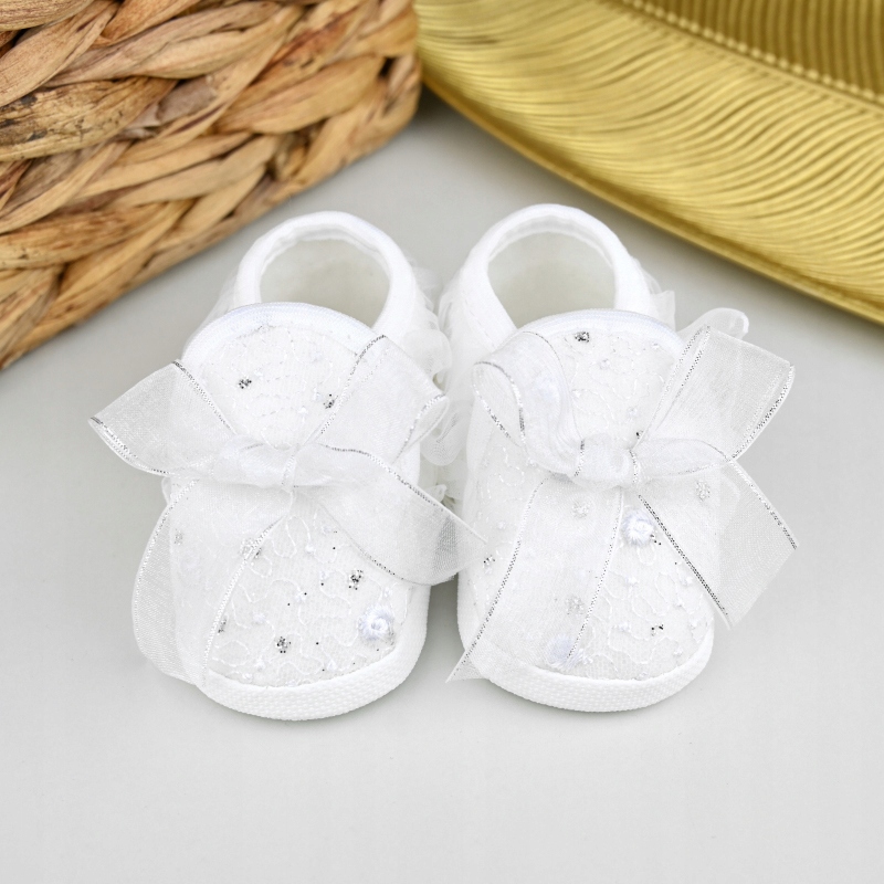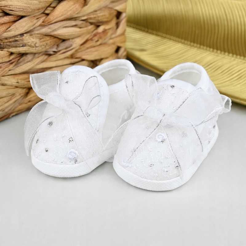 Очаровательные, белые крестильные туфли для девочки