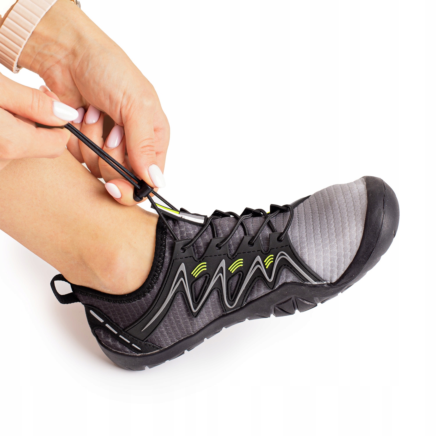 ✅ Простота в использовании: Эластичные шнурки со стопором позволяют быстро и легкая регулировка по ноге, а ручка на пятке облегчает надевание.