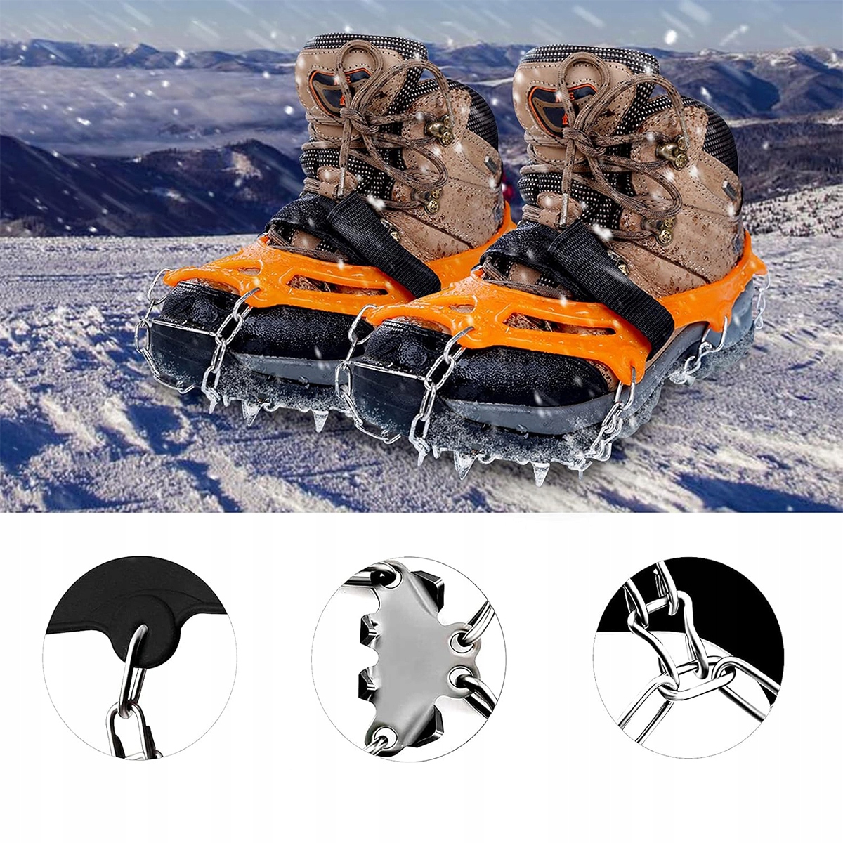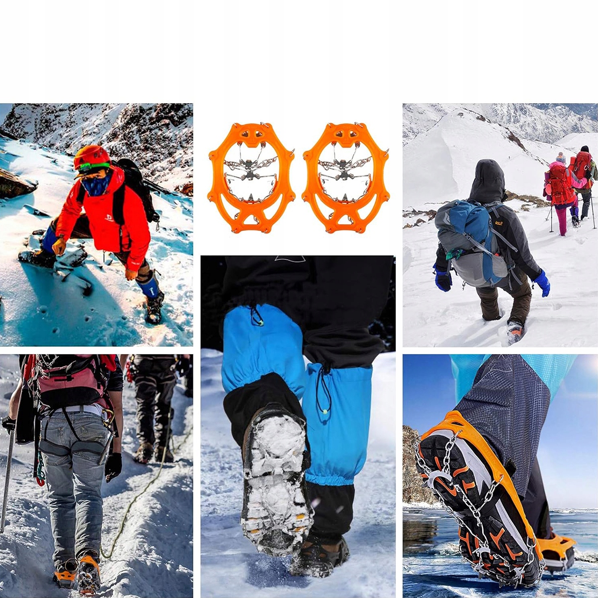 Подходят не только для зимних прогулок по льду и снегу, но и для охоты, скалолазания, альпинизма, походов, рыбалки и многих других занятий. Они подходят к разным размерам обуви. Конструкция обеспечивает надежный захват и предотвращает боковое скольжение, снижая риск поскользнуться и упасть при ходьбе по льду, снегу, грязи, мокрой траве или другим неблагоприятным условиям.