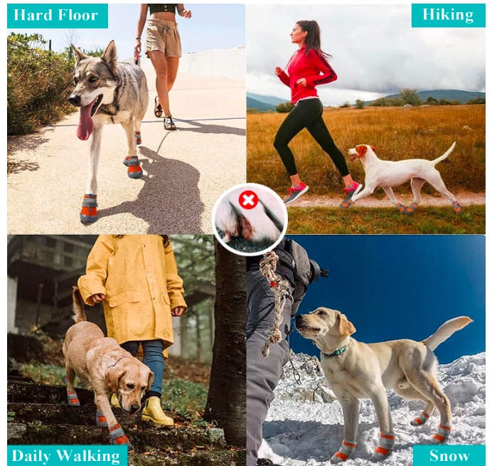 Обувь для пыльцевых собак, защита от лапы, не -скользящая подошва, 4 штуки, дышащие ботинки для собак со светоотражающими полосами, ботинки для собак, крепление на липучке, снежные ракеты для собак, для занятий спортом на открытом воздухе. 7 для собаки 30-41 кг h2>