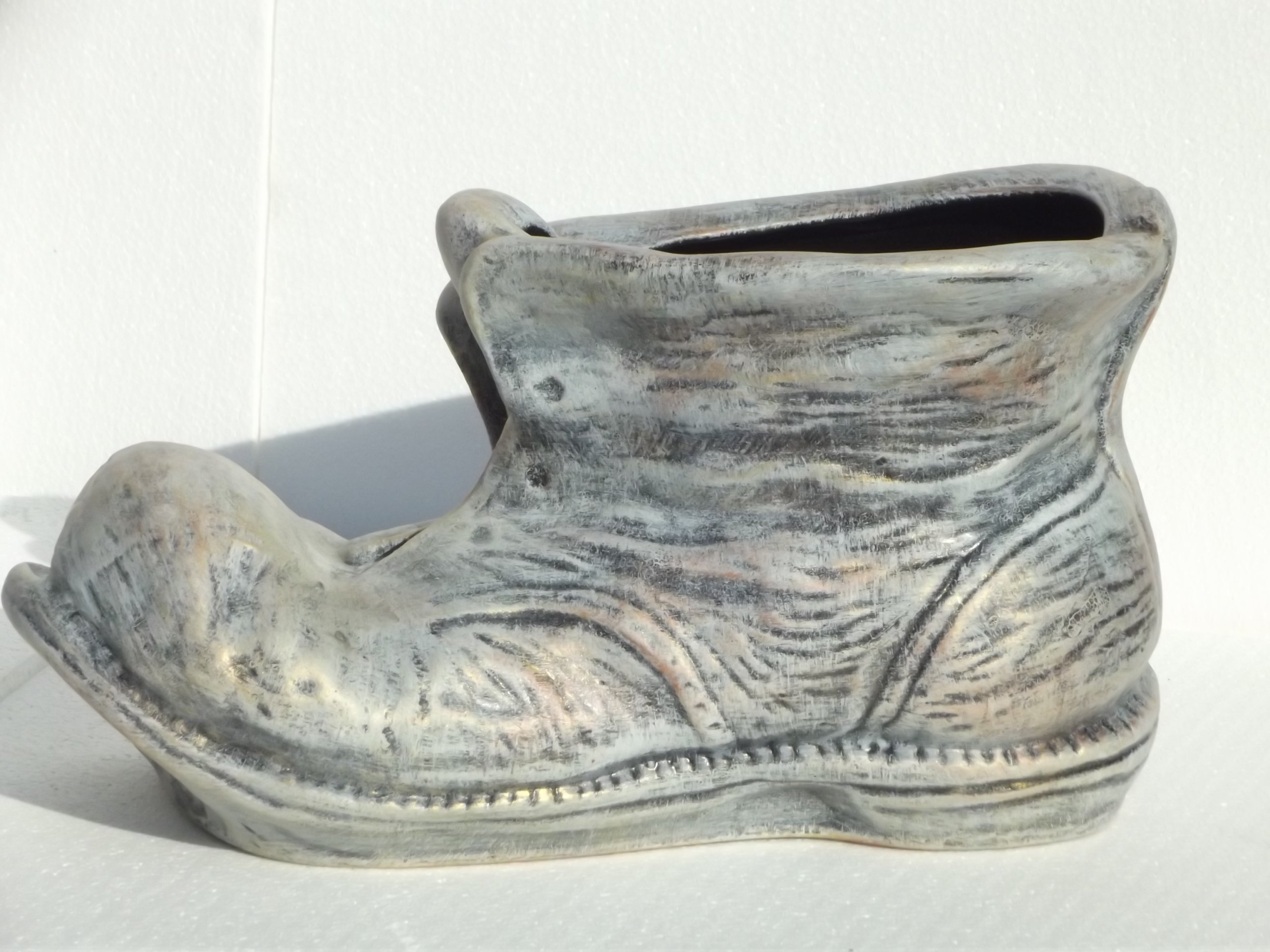 Цветочный горшок для обуви - украшение, может быть декоративным элементом дома или сада. Имеет очень устойчивую основу.