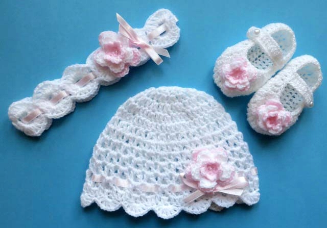 шапочки, связанные крючком, обувь, повязки, галстуки-бабочки, комплекты из 2-х, 3-х предметов.