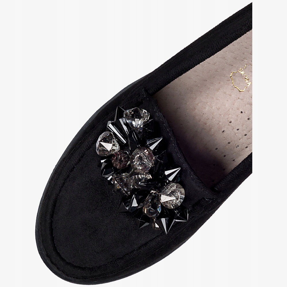 Черные женские мокасины со стразами, модель D23WX4-B, изготовлены из высококачественной экологической замши, что гарантирует отличное качество, комфорт и прилегание к ноге. Кожаная стелька в обуви – аксессуар, который имеет решающее значение для комфорта и гигиены ног. Мокасины со стразами – чрезвычайно элегантная обувь, сочетающая в себе комфорт и роскошь. Эта уникальная обувь создана для людей, которые хотят выделиться и добавить блеска своему стилю. Их характерной особенностью являются кристаллы, украшающие верх. Блестящие украшения придают мокасинам необыкновенный шарм и элегантность. Кристаллы, используемые для украшения мокасин, тщательно отбираются, чтобы обеспечить высочайшее качество и привлекательный внешний вид. Эти уникальные туфли идеально подходят как для повседневного, так и для более формального случая. Их можно носить с элегантными брюками или юбкой, придавая всему образу шик и элегантность. Это отличный выбор для тех, кто хочет добавить немного блеска в свой повседневный гардероб. Мокасины со стразами – это обувь, которая привлекает внимание своим уникальным дизайном и яркими акцентами. В Casu вы найдете множество моделей, которые непременно добавят оригинальности вашему стилю.