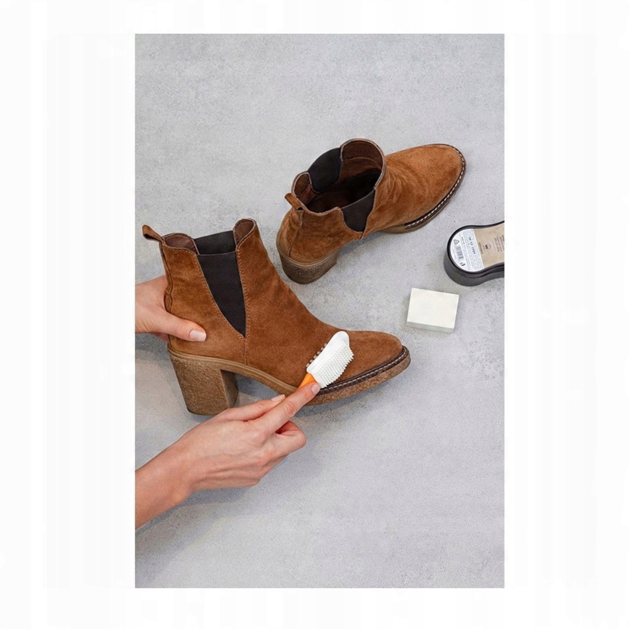 1⃣ перед использованием тщательно чистите туфли, чтобы удалить свободную грязь и пыль. Губка и уходи на несколько минут.