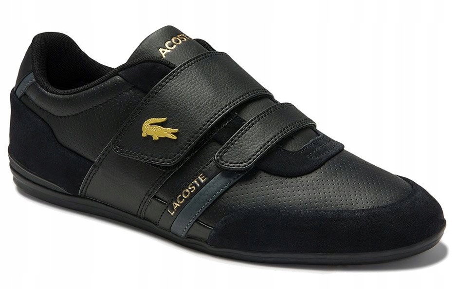 Кроссовки Lacoste — Misano Strap — универсальное, вневременное предложение, сочетающее классический дизайн с современными деталями. Черный верх из комбинации натуральной и искусственной кожи дополнен золотым брендингом. Удобная застежка-липучка заменяет систему шнуровки. Мягкая текстильная внутренняя часть наполнена антибактериальной вставкой OrthoLite®. Конструкция закреплена на гибкой плоской подошве с цепким протектором.